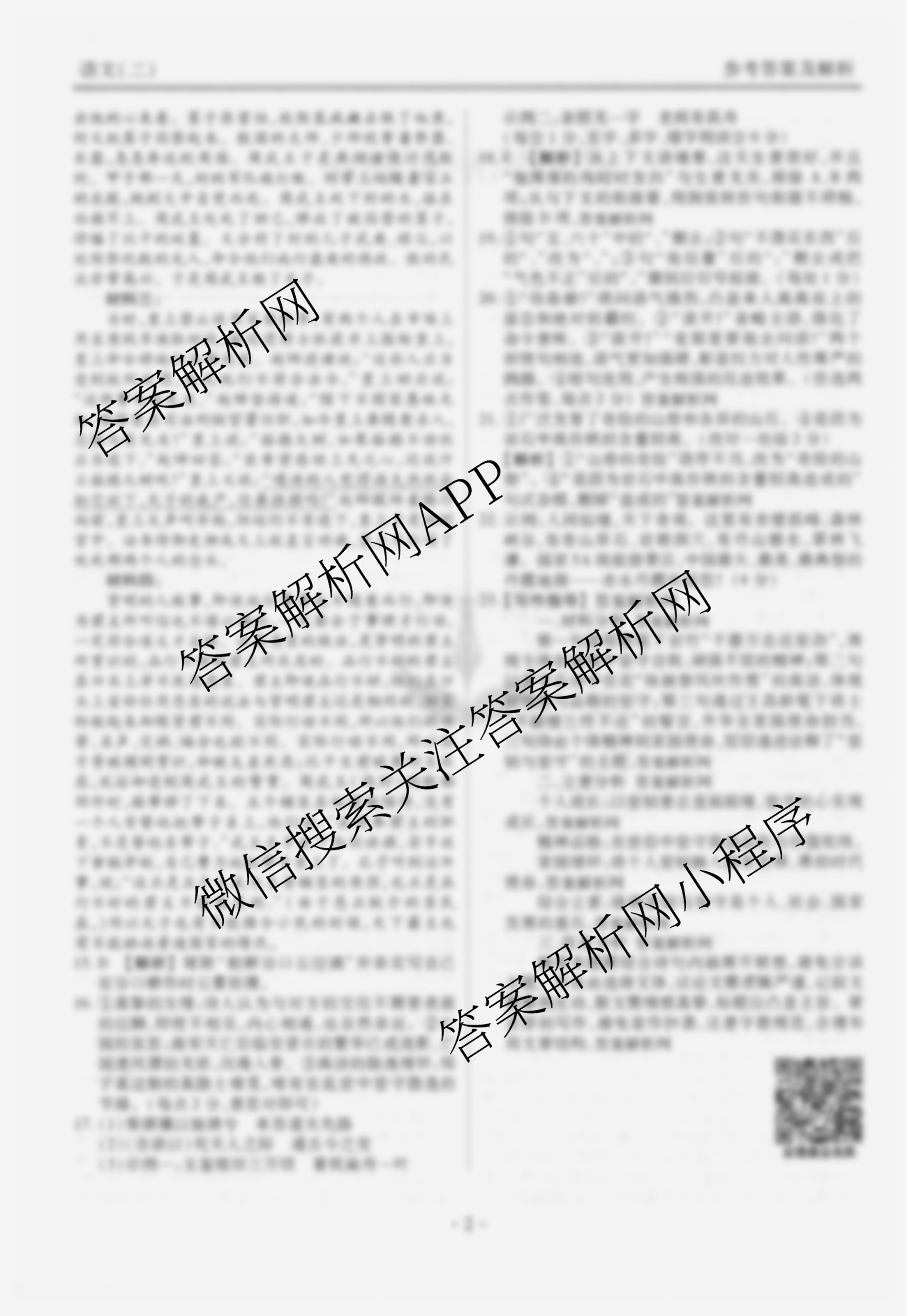 - 2025~2026(衡水金卷先享题)·摸底卷学年度[高三]一轮复习摸底测试卷(二)2语文答案