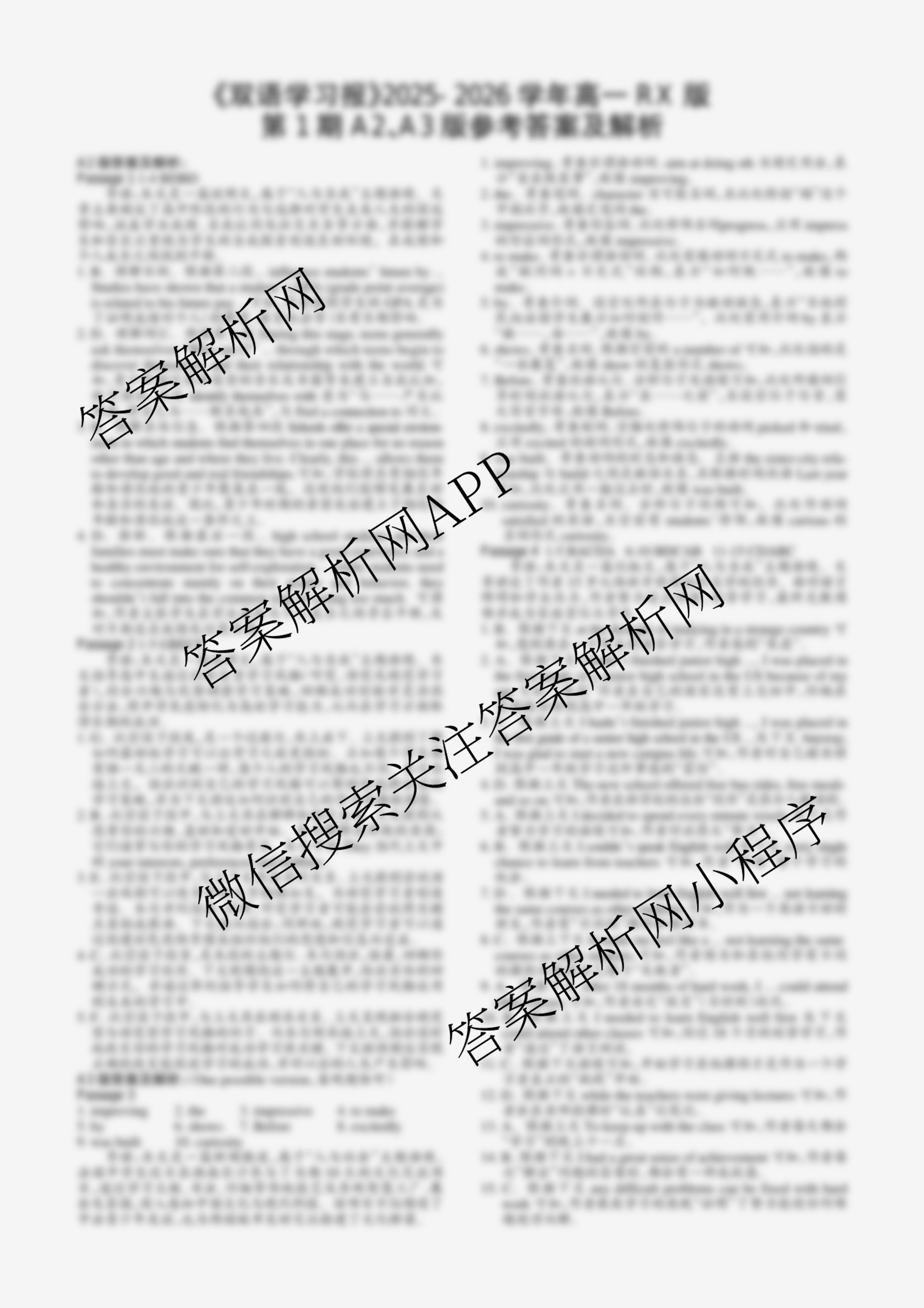 2025-2026 双语学习报 高一 RX版广东专版第1期答案