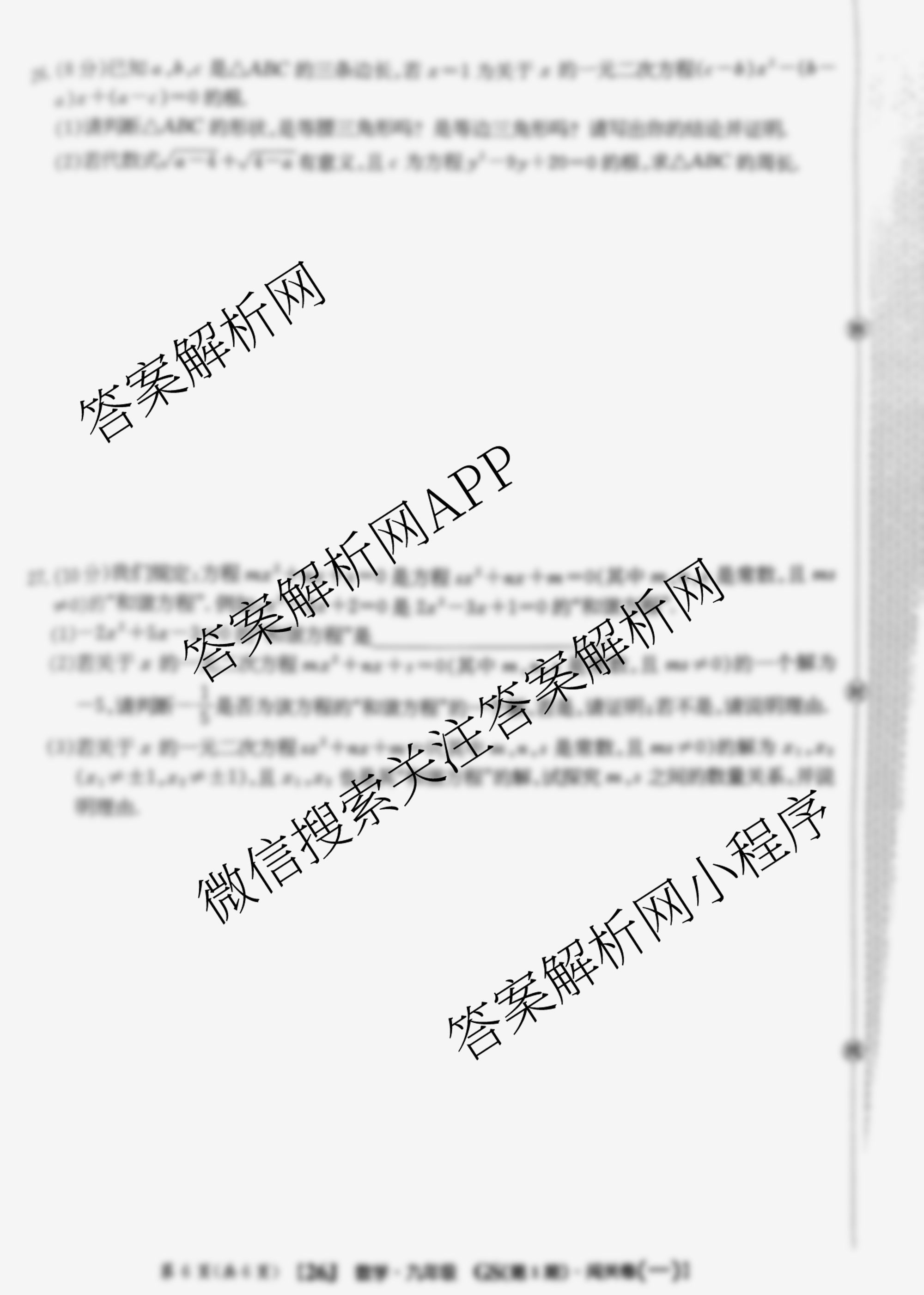 2025-2026 闯关卷 九年级 数学(GS)(一)1试题