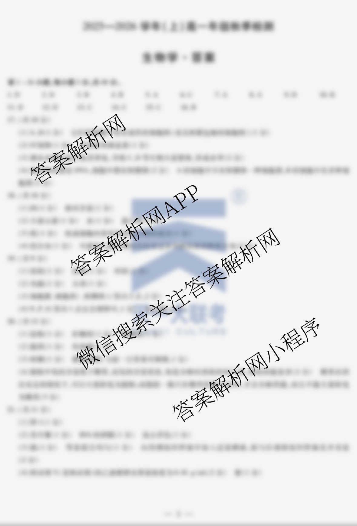 - 2025-2026(天一大联考)河南省学年(上)[高一]年级秋季检测生物答案