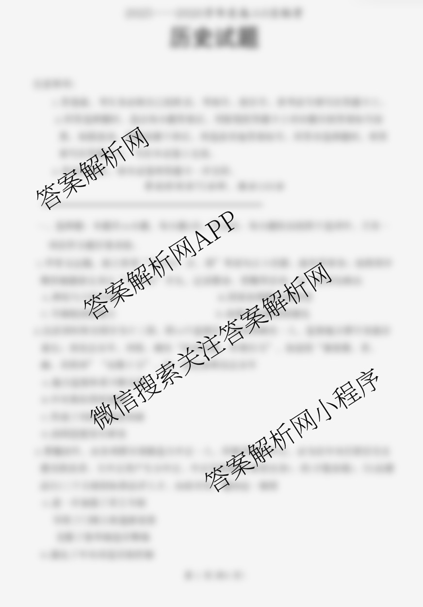 百师联盟·2025-2026学年度高二9月联考历史试题,目前学英语报答案已经汇总了百师联盟·2025-2026学年度高二9月联考历史试题的各科答案和试卷,获取更多百师联盟答案解析,请在关注本站。