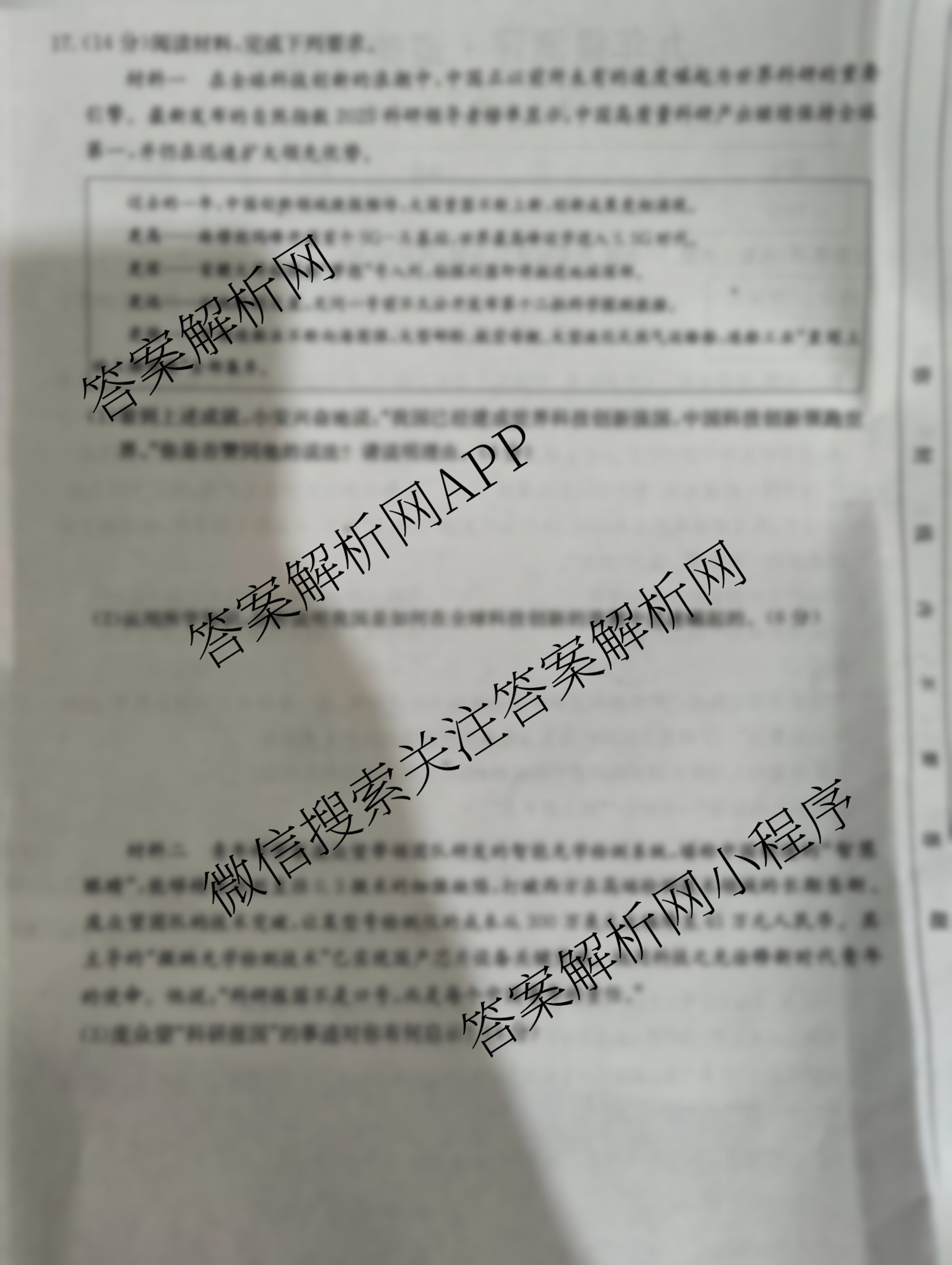 - [九年级]安徽省2026届测评(PGZX B-AH(一))道德与法治(R)答案