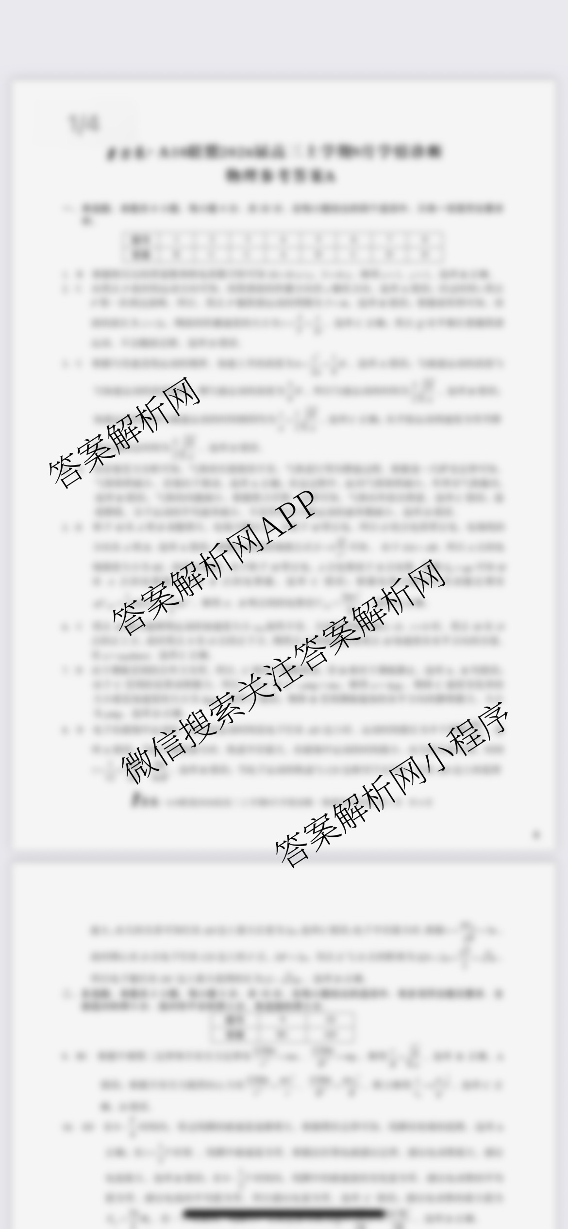 - (高三)[1号卷]A10联盟2026届上学期9月学情诊断物理(A)答案