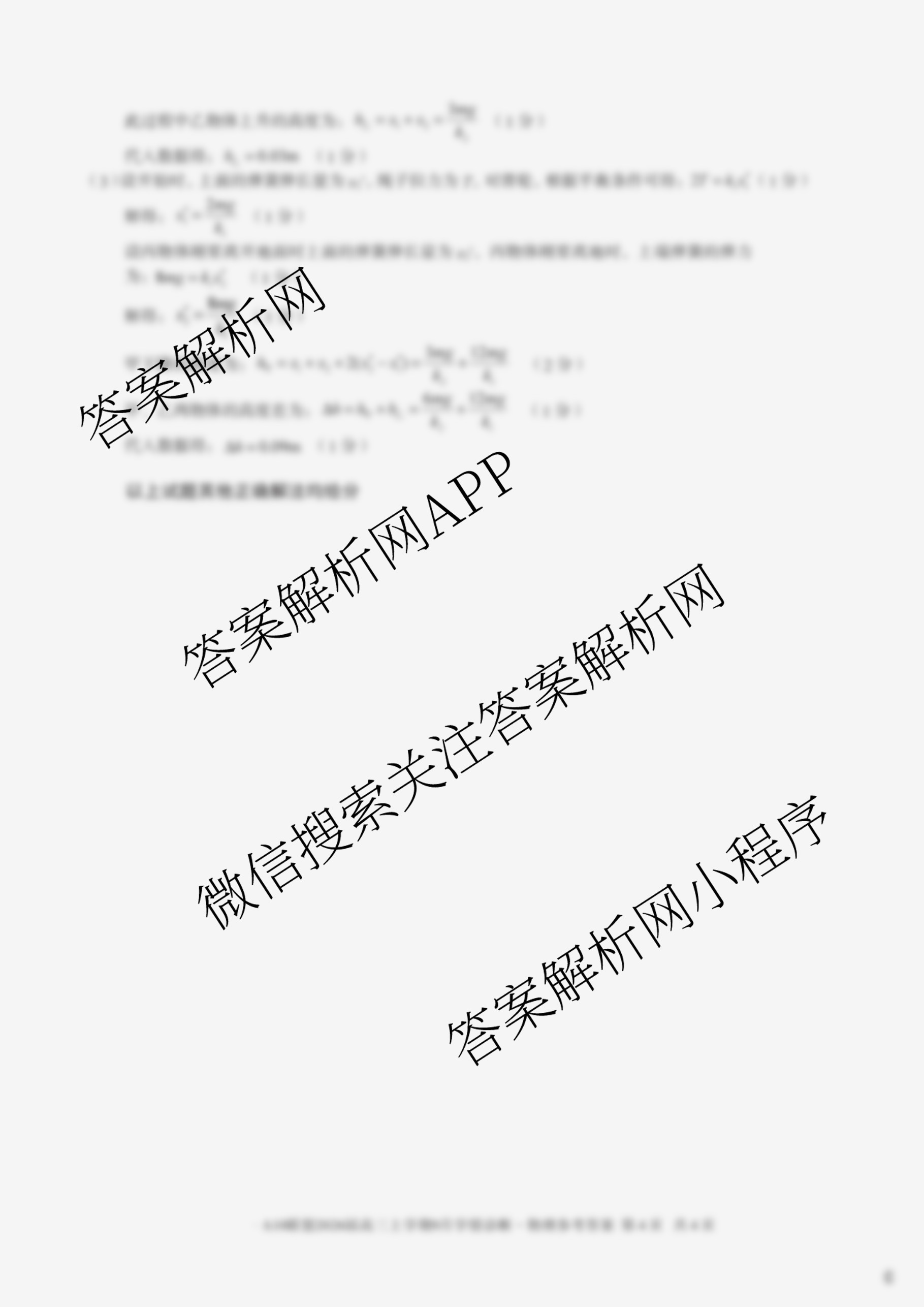 - (1号卷)A10联盟2026届(高三)上学期9月学情诊断物理(B)答案