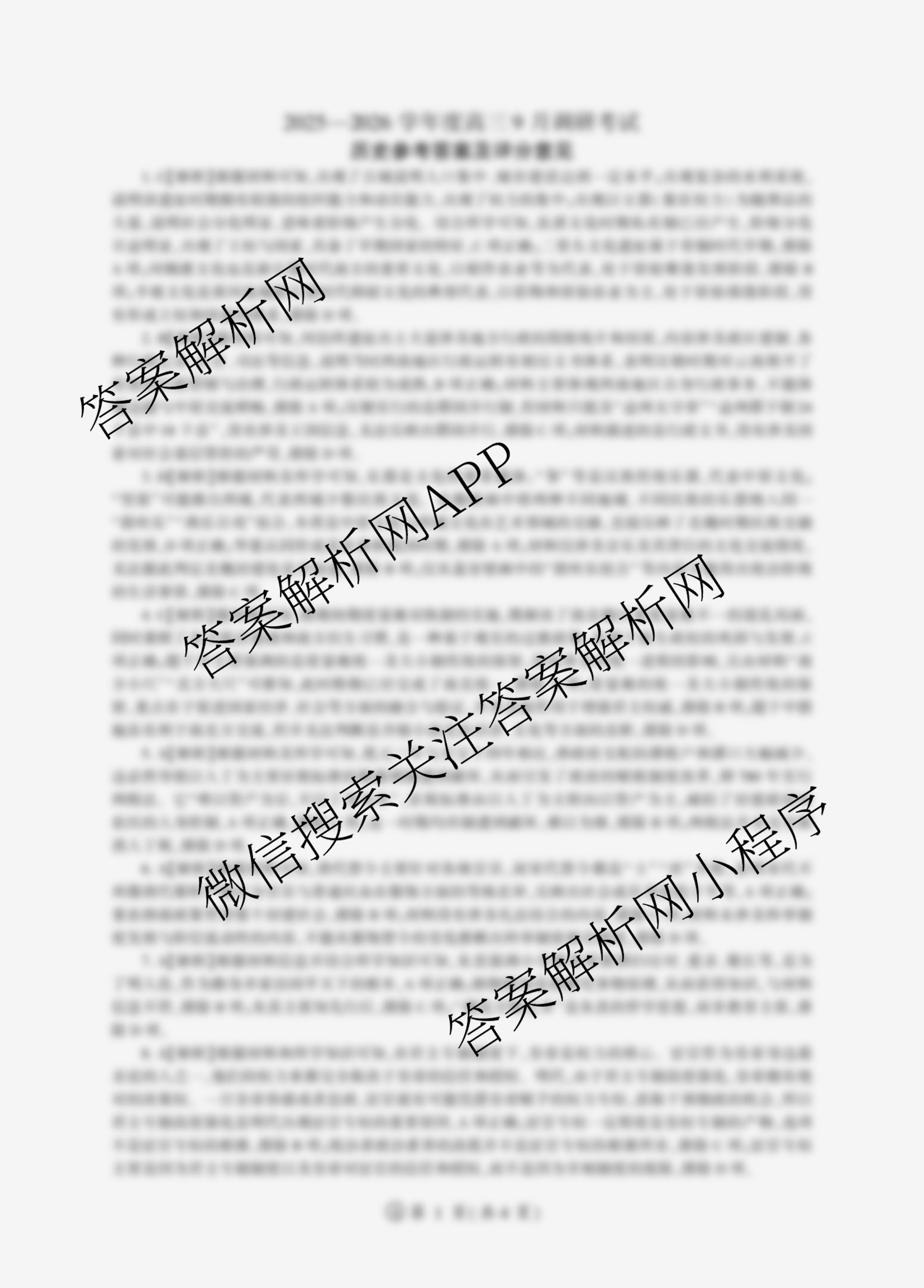 - 2025~2026[百师联盟]·学年度[高三]9月调研考试历史(A)答案