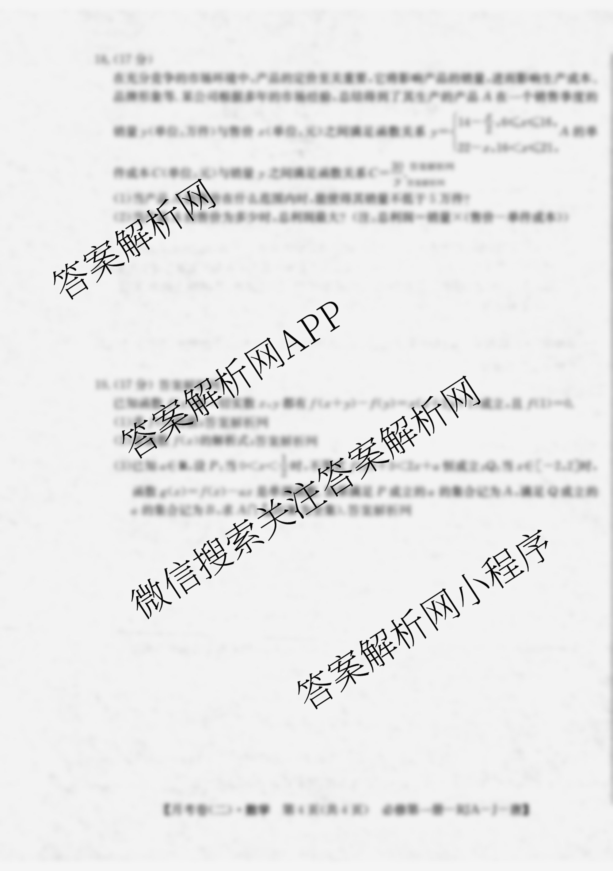 - [高一]2025~2026全国名校上学期第二次月考试卷数学(必修第一册-RJA-J-唐)答案