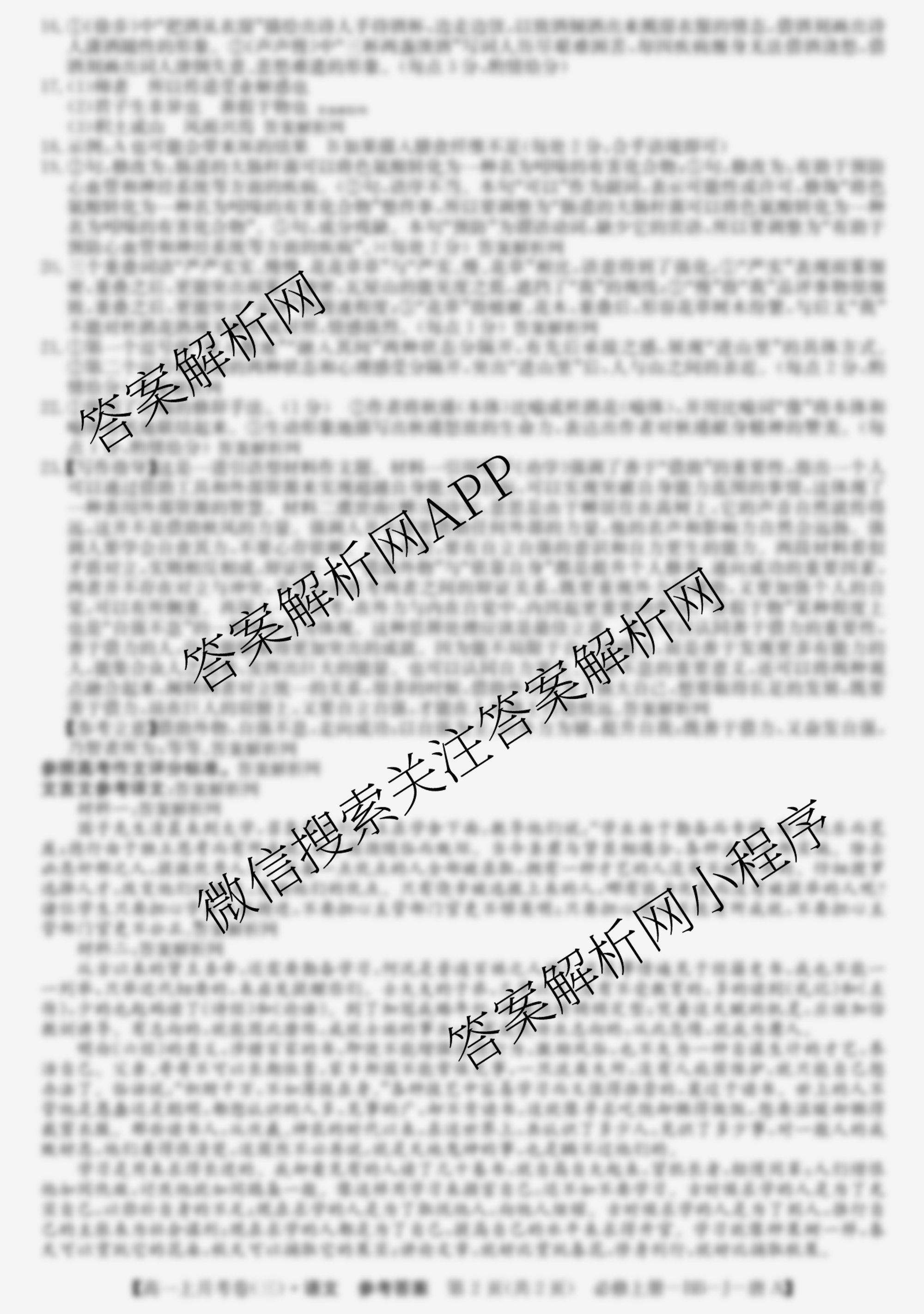 - (高一)2025~2026全国名校上学期第三次月考试卷语文(必修上册-BB-J-唐A)答案