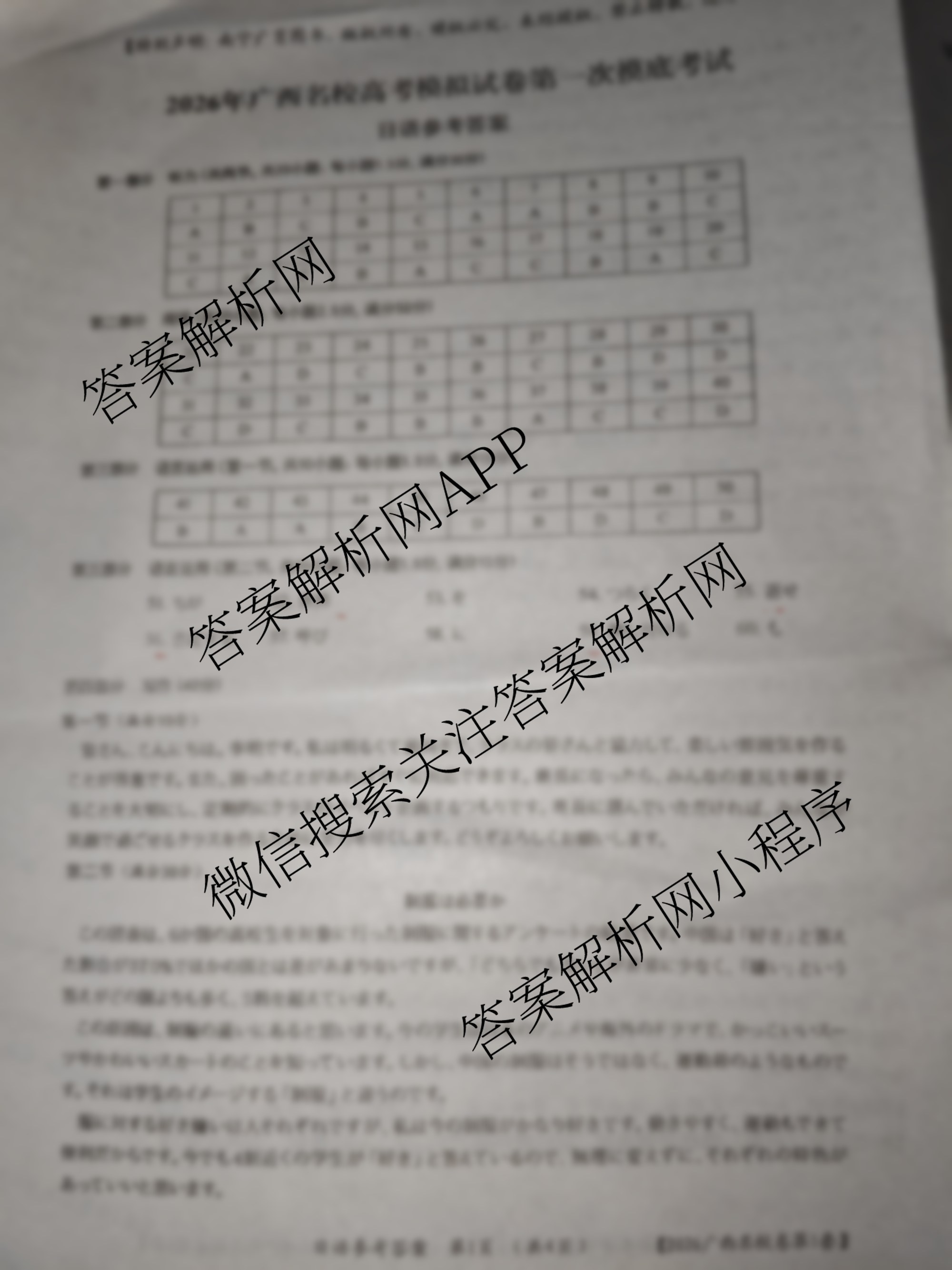 - (高一)2026[广西名校]卷-1[广西名校]高考模拟试卷第一次摸底考试日语答案