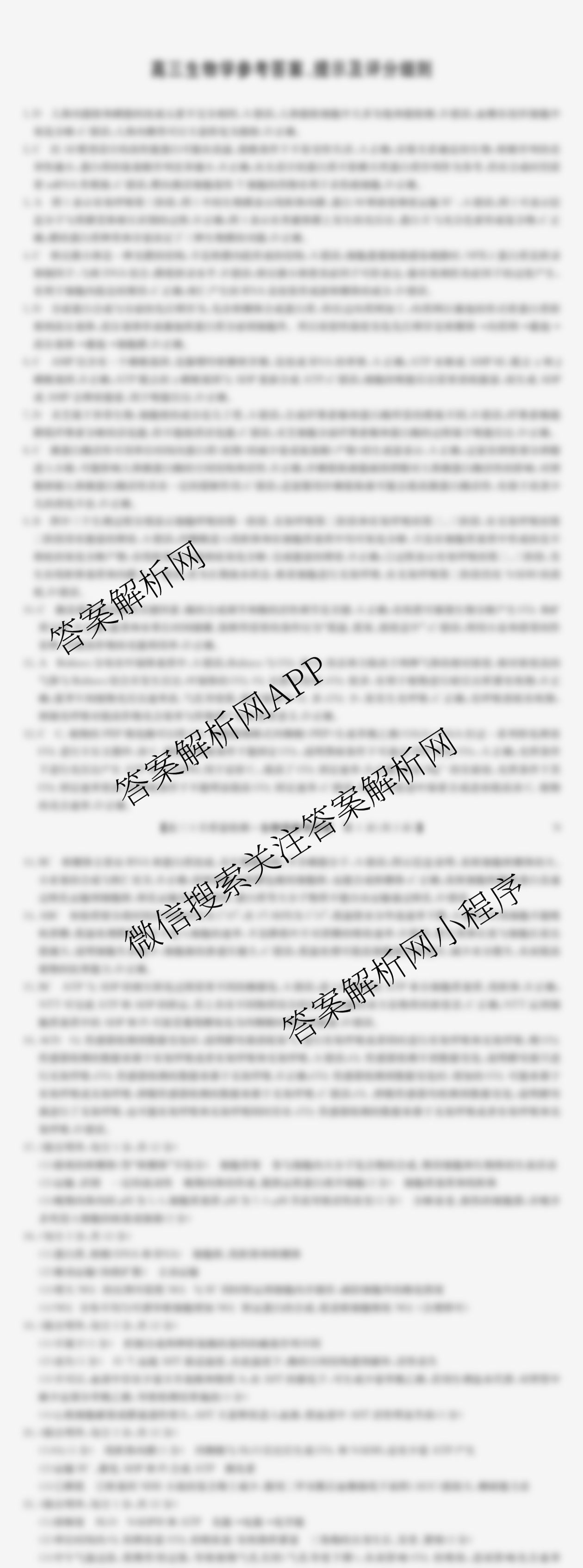- [高三](九师联盟)·2026届9月教学质量检测(9.28)生物(HC)答案