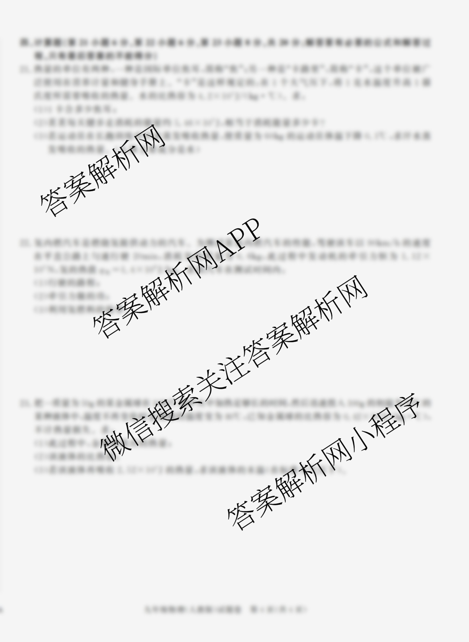 - [九年级]安徽省2025~2026学年上学期教学质量调研(一)A卷(无标题)物理(沪科版)答案