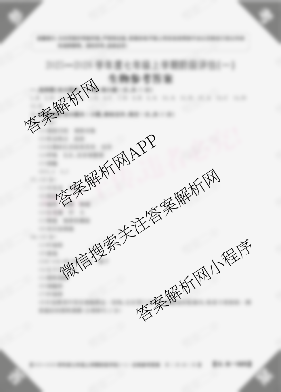 - [七年级]山西省2025-2026学年度上学期阶段评估(一)[1L-SHX]生物(R)答案