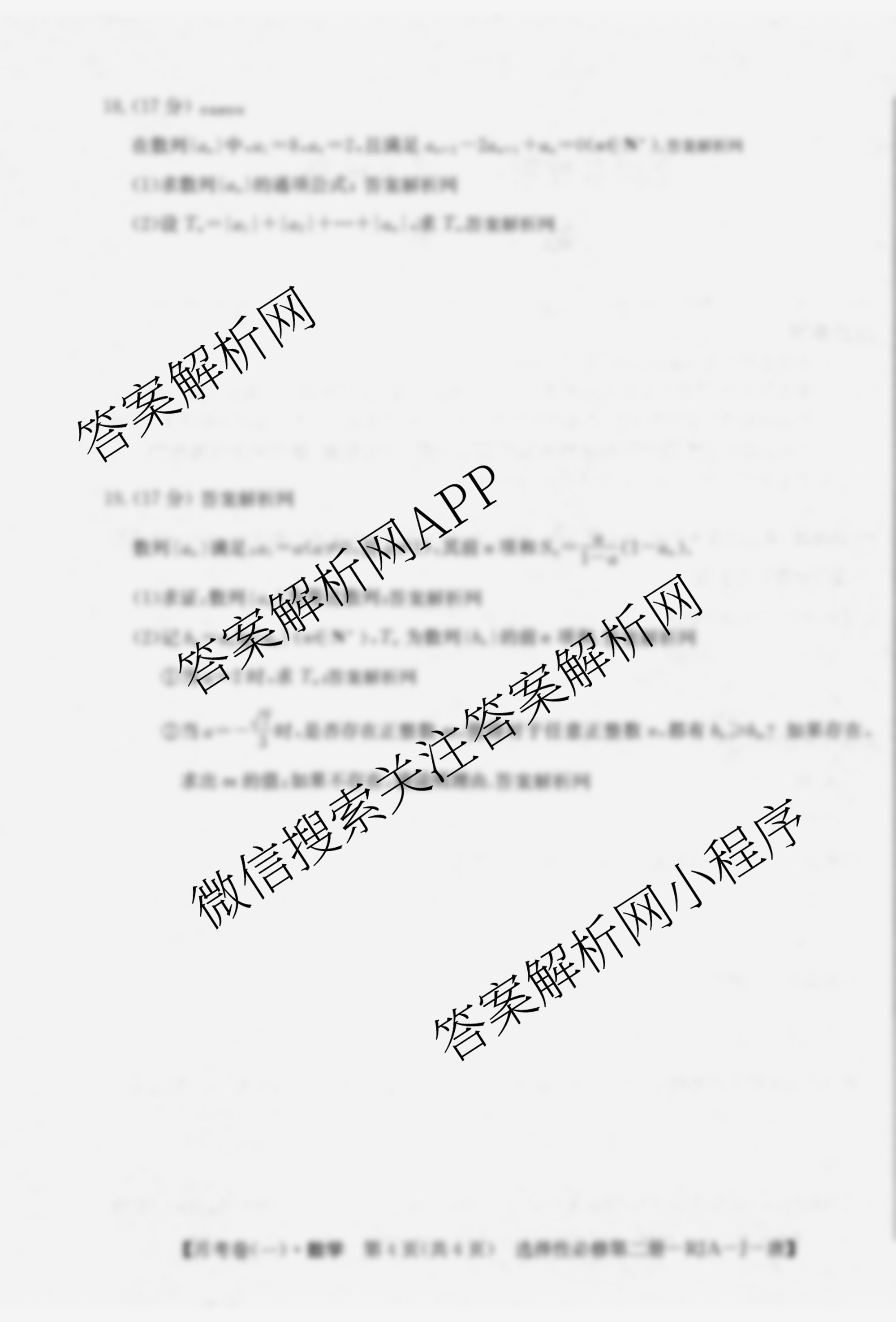 - [高二]2025~2026全国名校上学期第三次月考试卷数学(选择性必修第二册-RJA-J-唐)答案