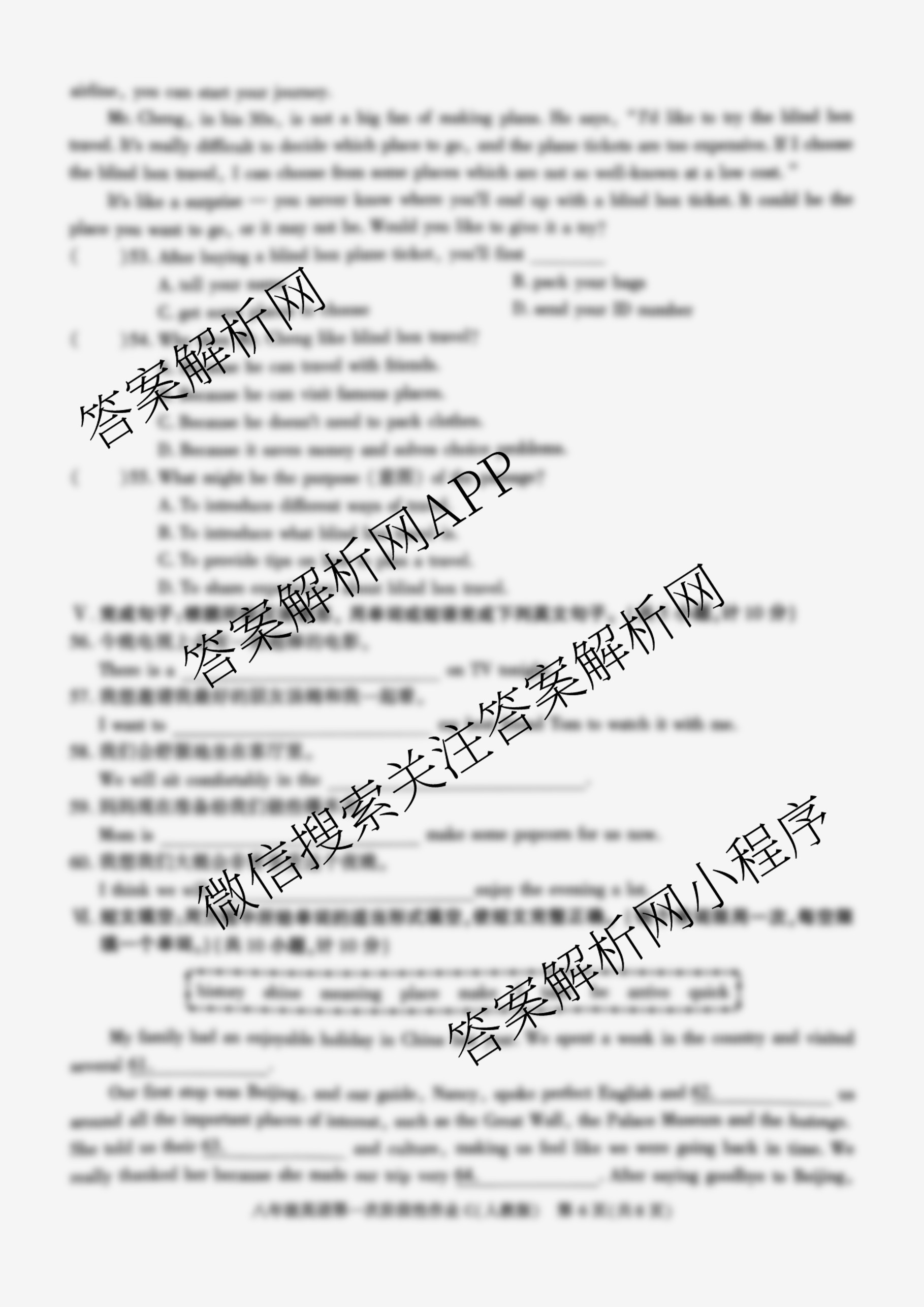 - 陕西省2025~2026学年度第一学期第一次阶段性作业(八年级)(C)英语(人教版)试题