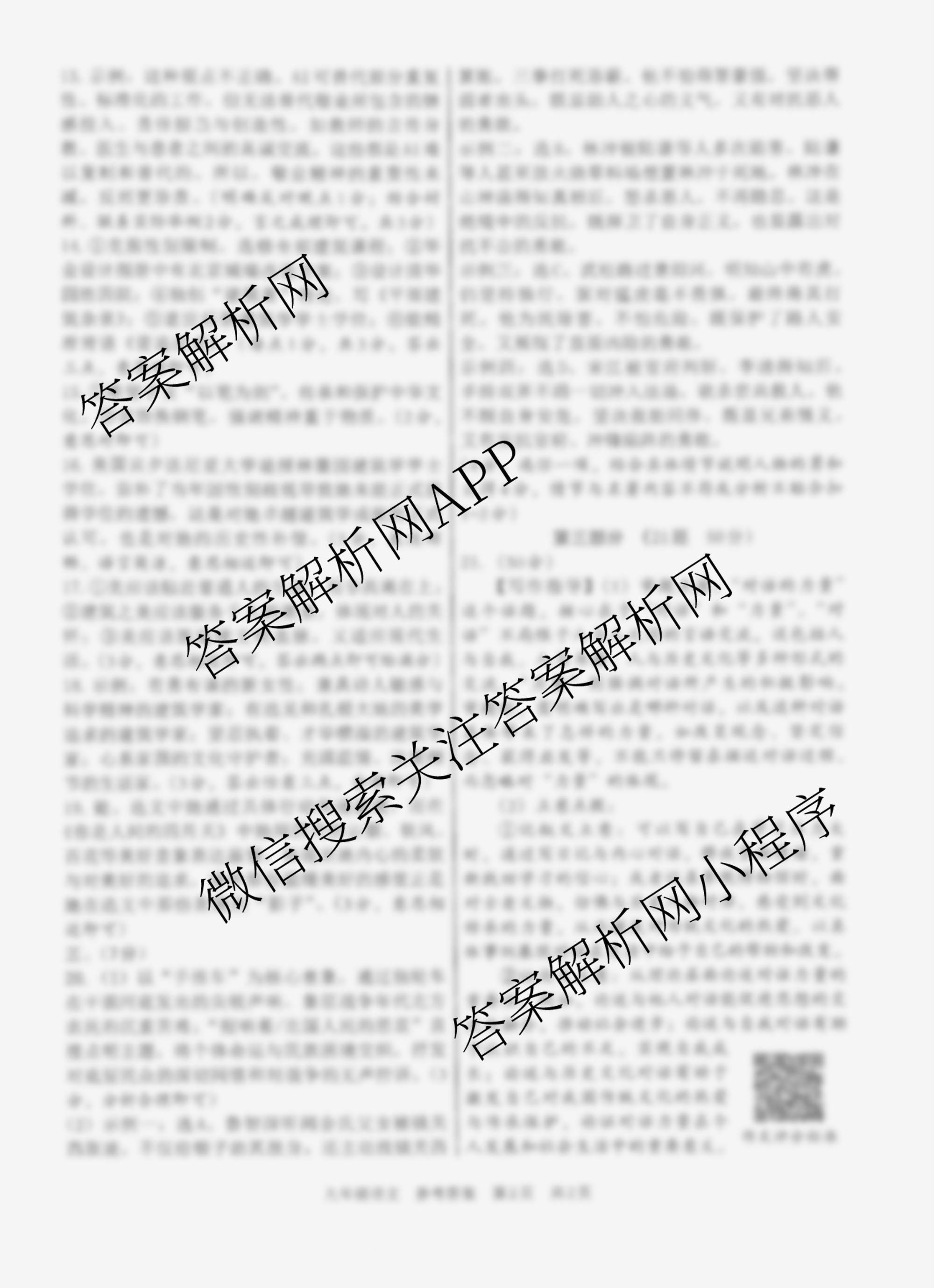 - 河北省2025~2026学年第一学期学情分析一[九年级]语文(部编版)答案