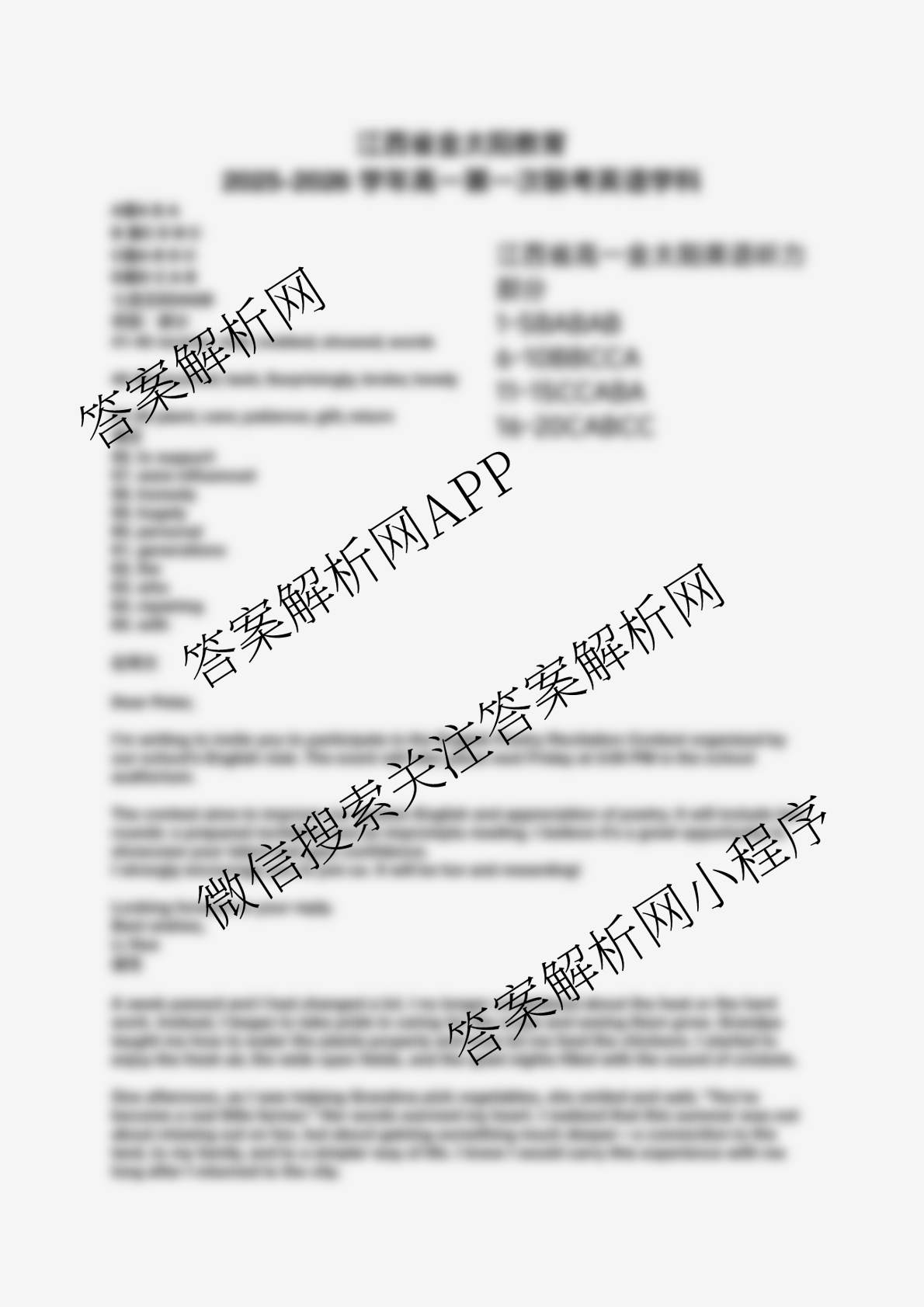江西省2025-2026学年高一10月联考(10.10)英语答案,目前学英语报答案已经汇总了江西省2025-2026学年高一10月联考(10.10)英语答案的各科答案和试卷,获取更多金太阳大联考精品专辑答案解析,请在关注本站。