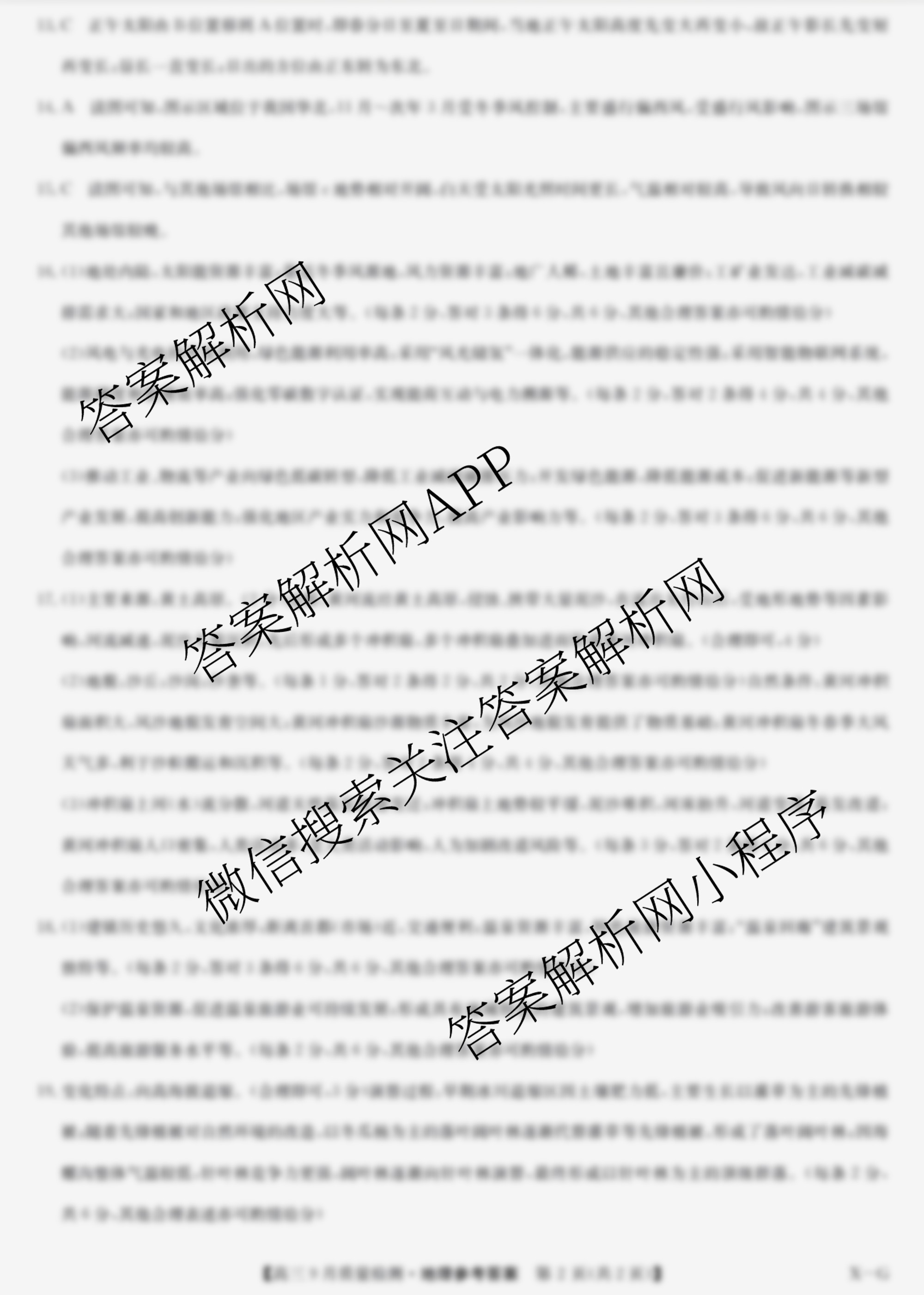 - [高三]九师联盟·2026届9月质量检测巩固卷(G)地理(X-G)答案