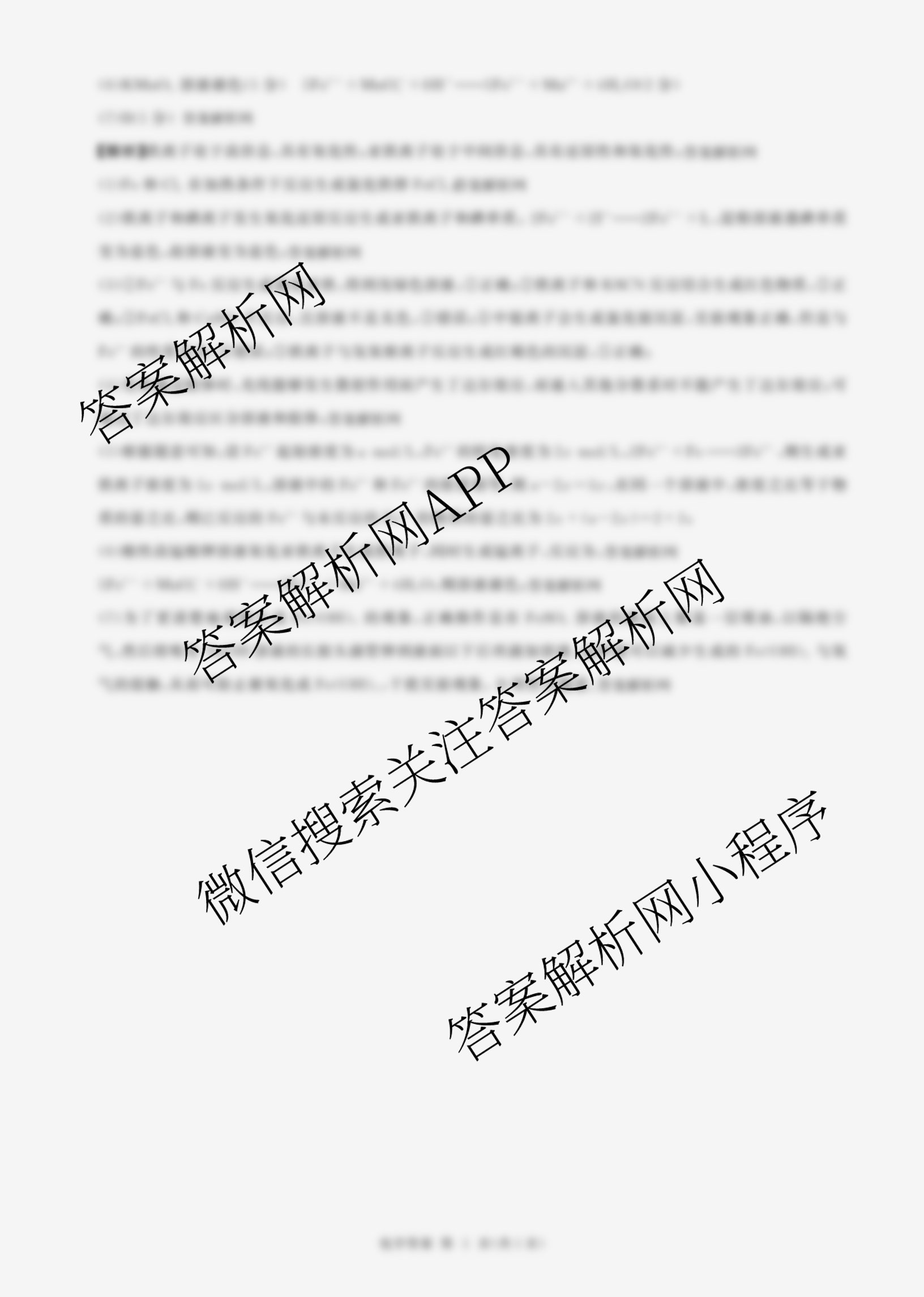 - 2025-2026百师联盟学年(高一)上学期阶段测试卷(四)化学(鲁科版90分钟多选)答案