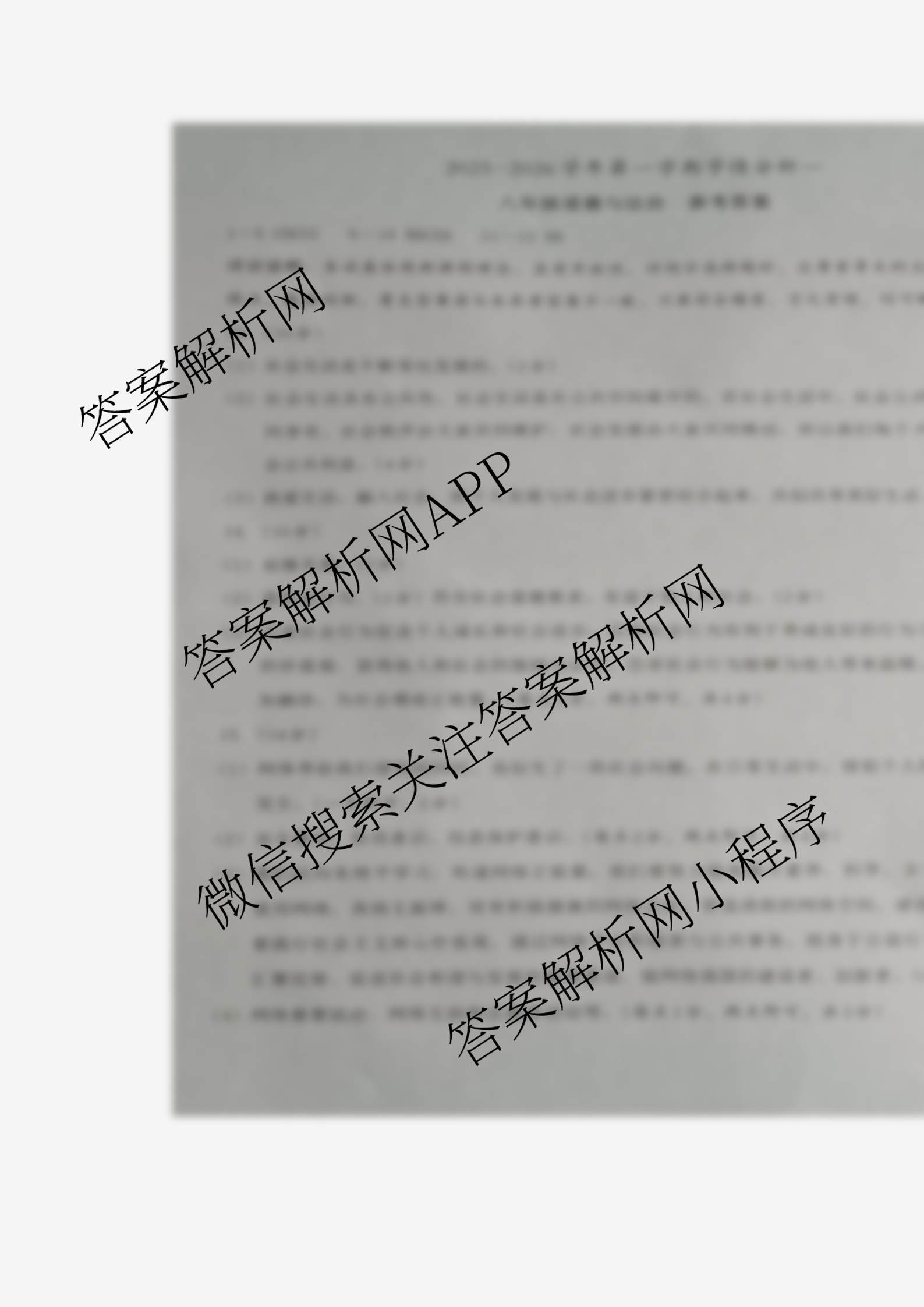 - [八年级](文博志鸿)2025-2026学年第一学期学情分析一道德与法治(部编版)答案