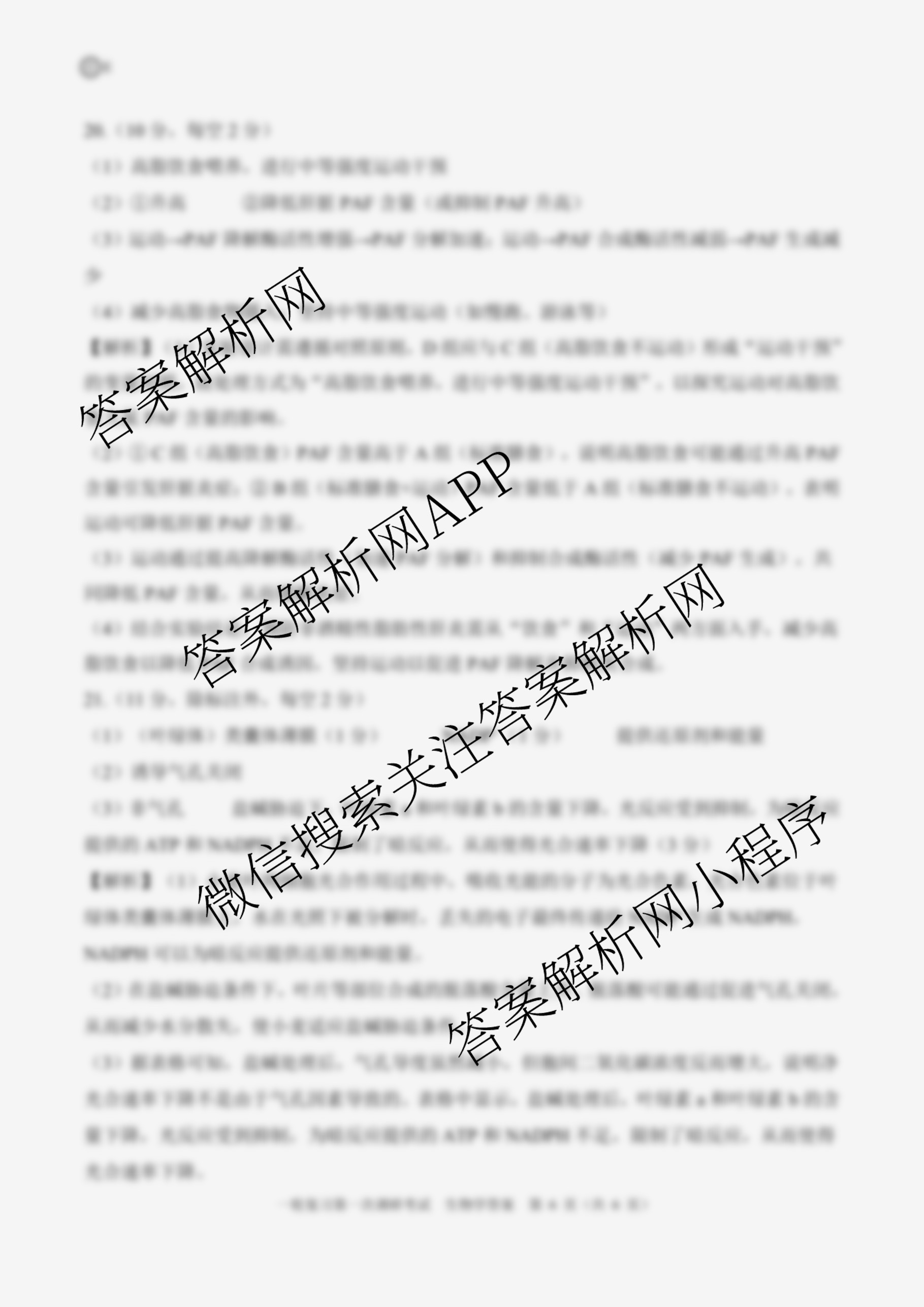 - 2026届[高三]百师联盟一轮复习第一次调研考试生物(百H)答案