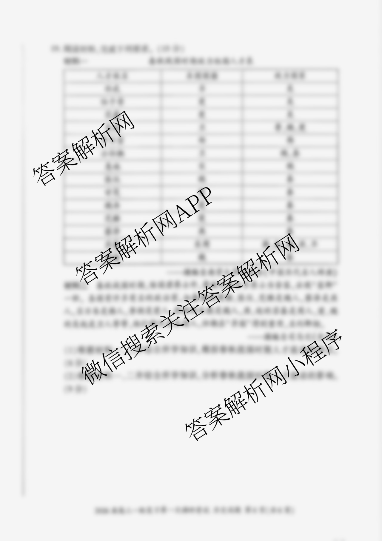 - [高三](百师联盟)2026届一轮复习第一次调研考试历史(百N)答案