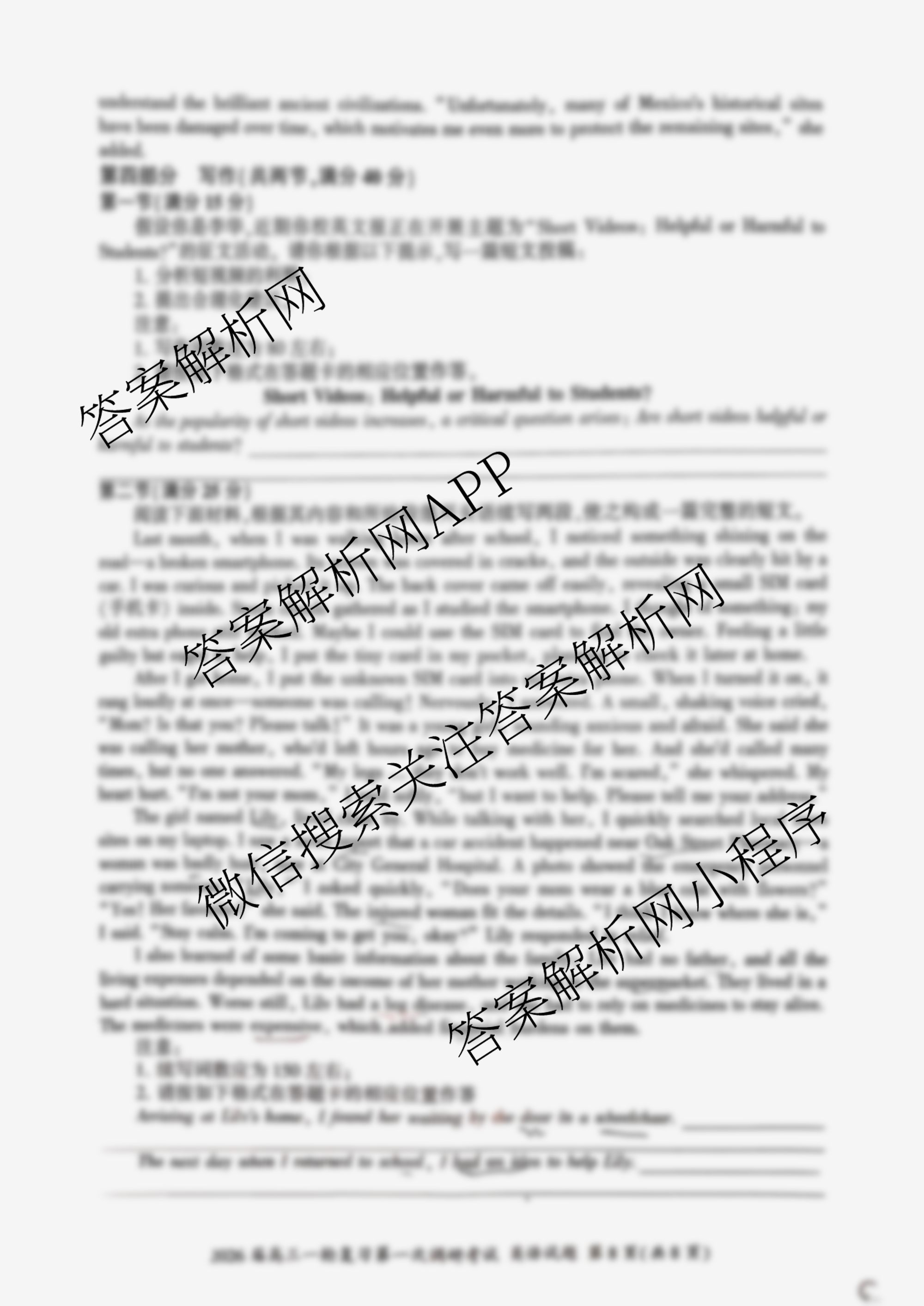 - [高三][百师联盟]·2026届一轮复习第一次调研考试英语(百A)答案