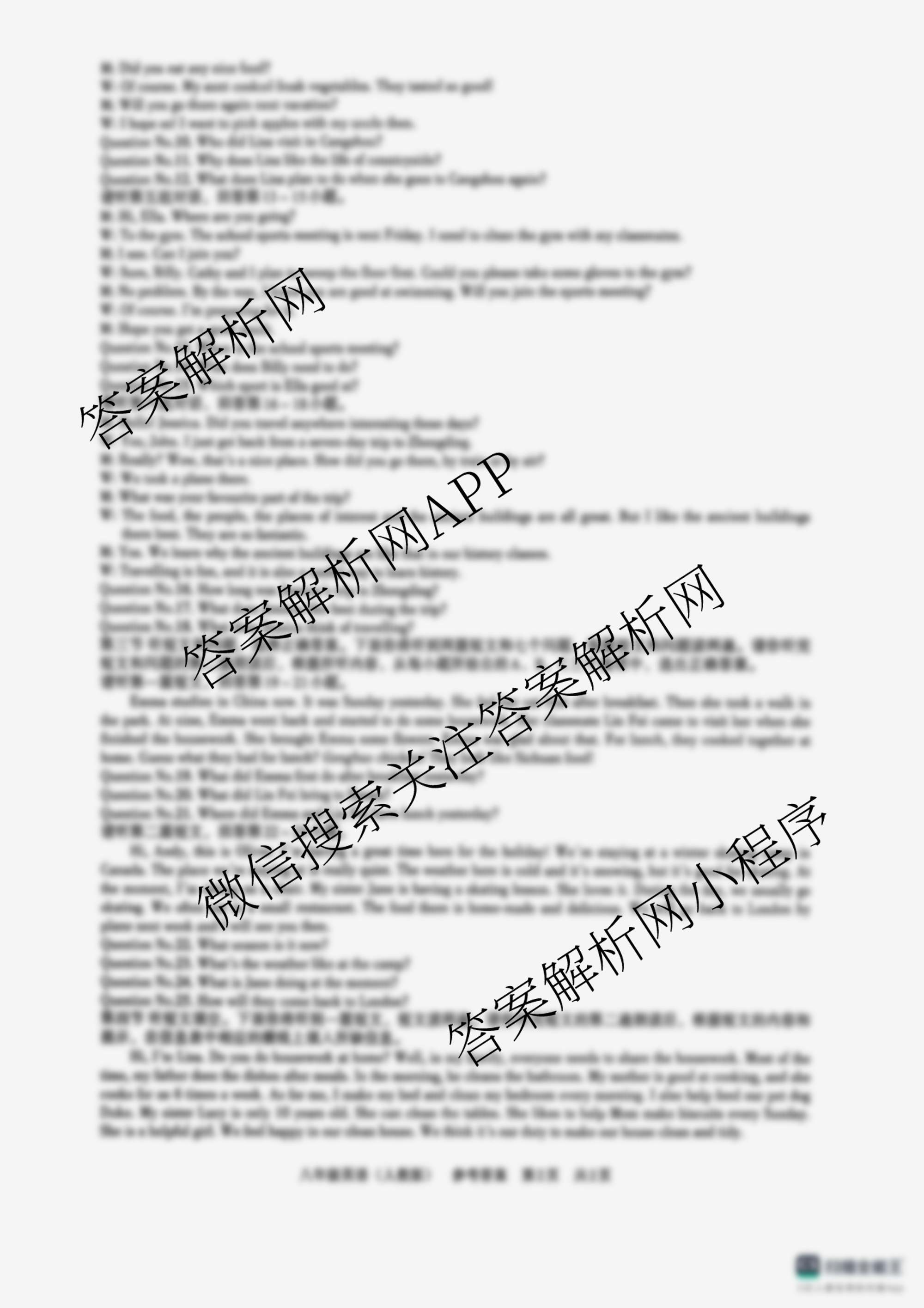 - (八年级)名校联盟专用河北省2025-2026学年第一学期学情分析一英语(人教版)答案