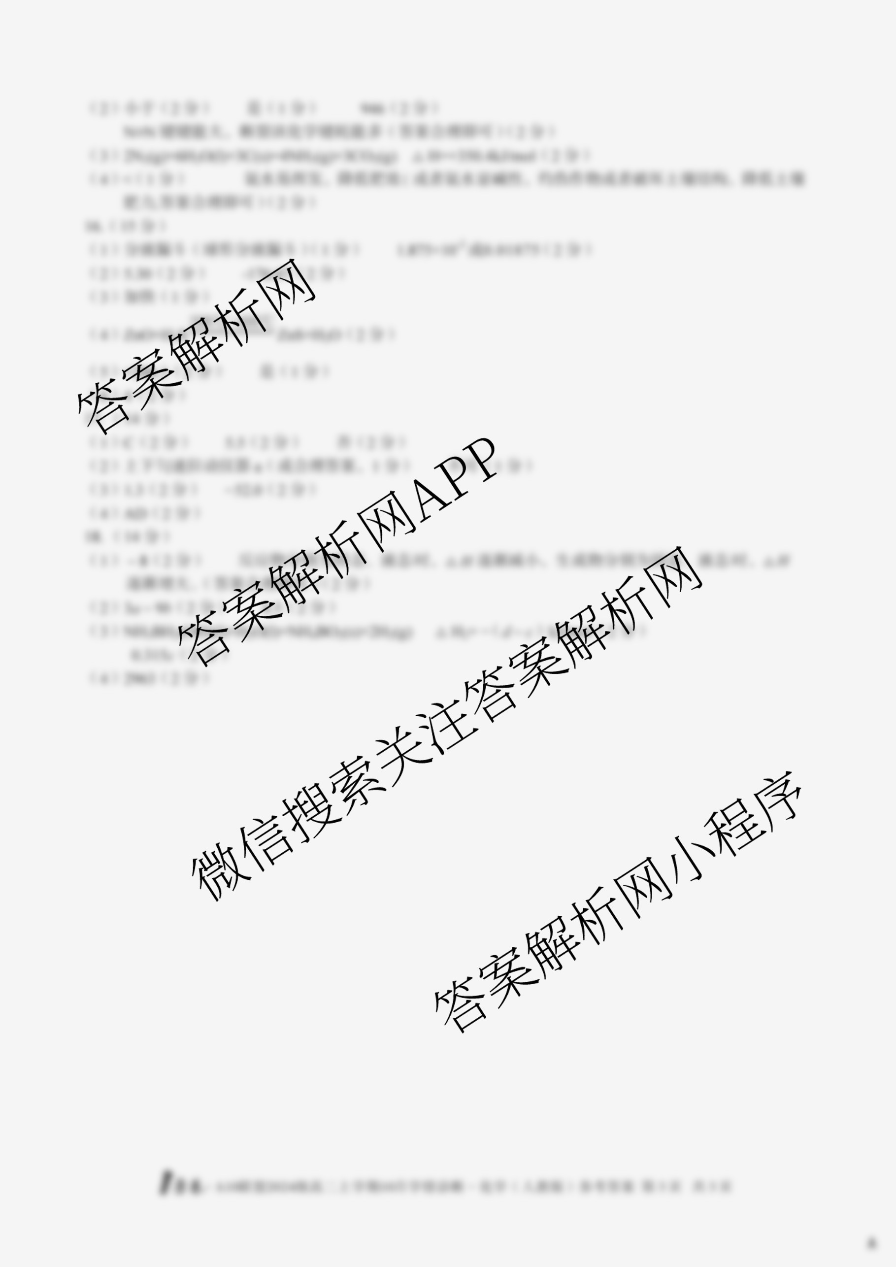 - [高二][1号卷]A10联盟2024级上学期10月学情诊断化学(人教版C)答案