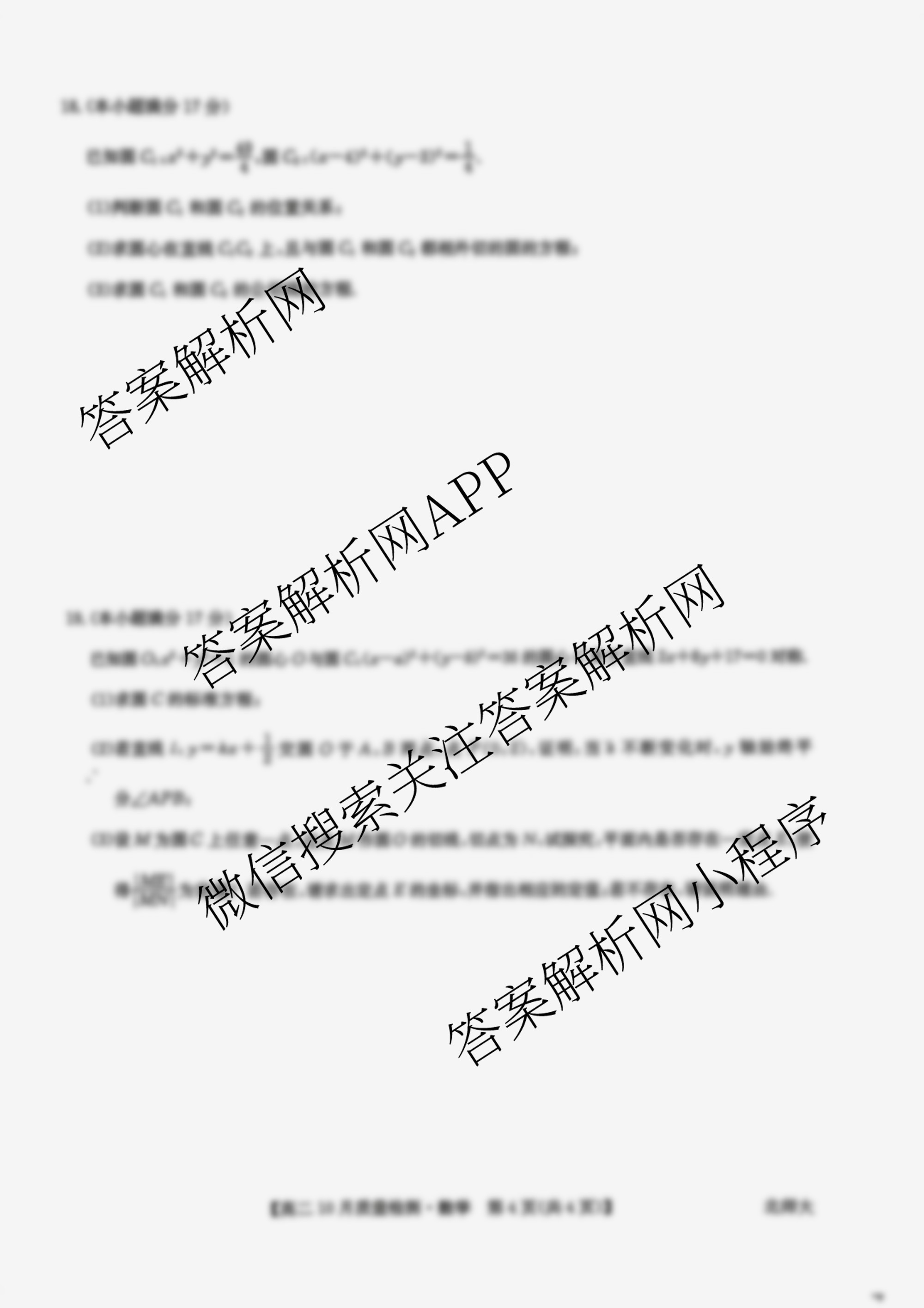 - (高二)(九师联盟)·2025-2026学年10月质量检测数学(北师大)答案