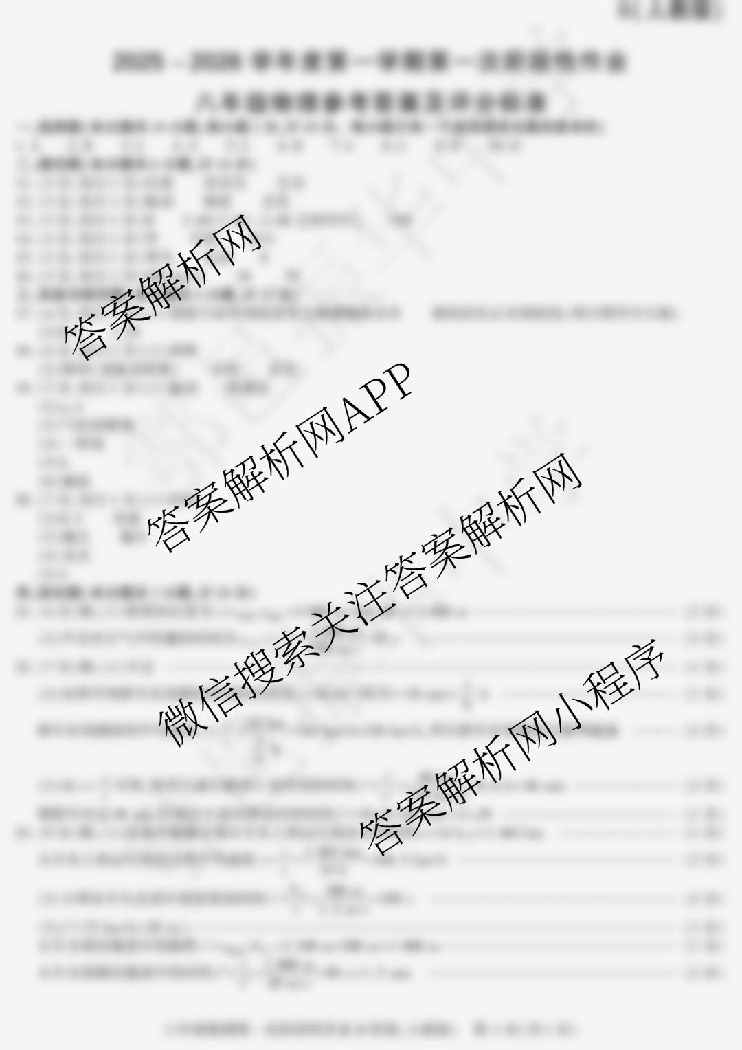 - 2025~2026陕西省学年度第一学期第一次阶段性作业[八年级](B)物理(人教版)答案