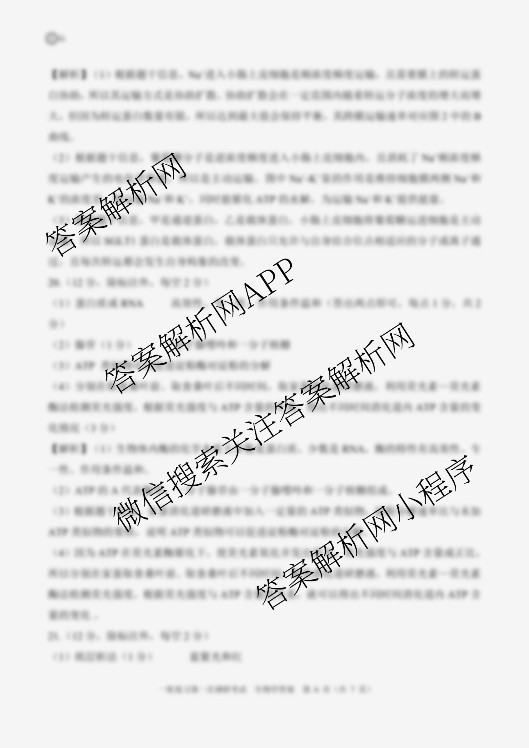 - 2026届(高三)百师联盟·一轮复习第一次调研考试生物(百L)答案