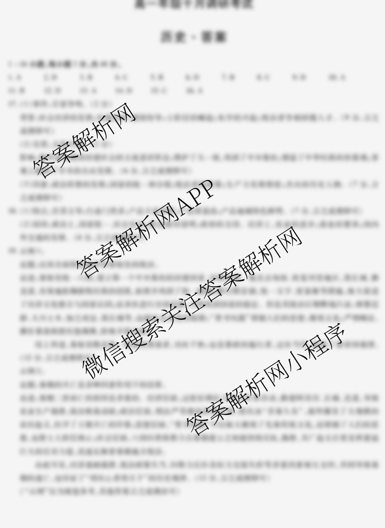 - 2025-2026[高一]天一大联考安徽年级十月调研考试历史答案