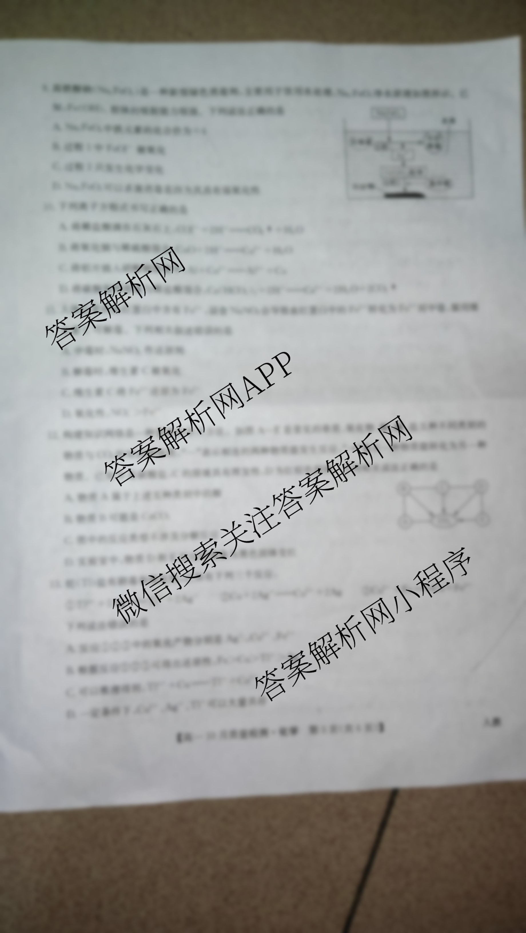 - 2025-2026(高一)九师联盟学年10月质量检测化学(人教)答案