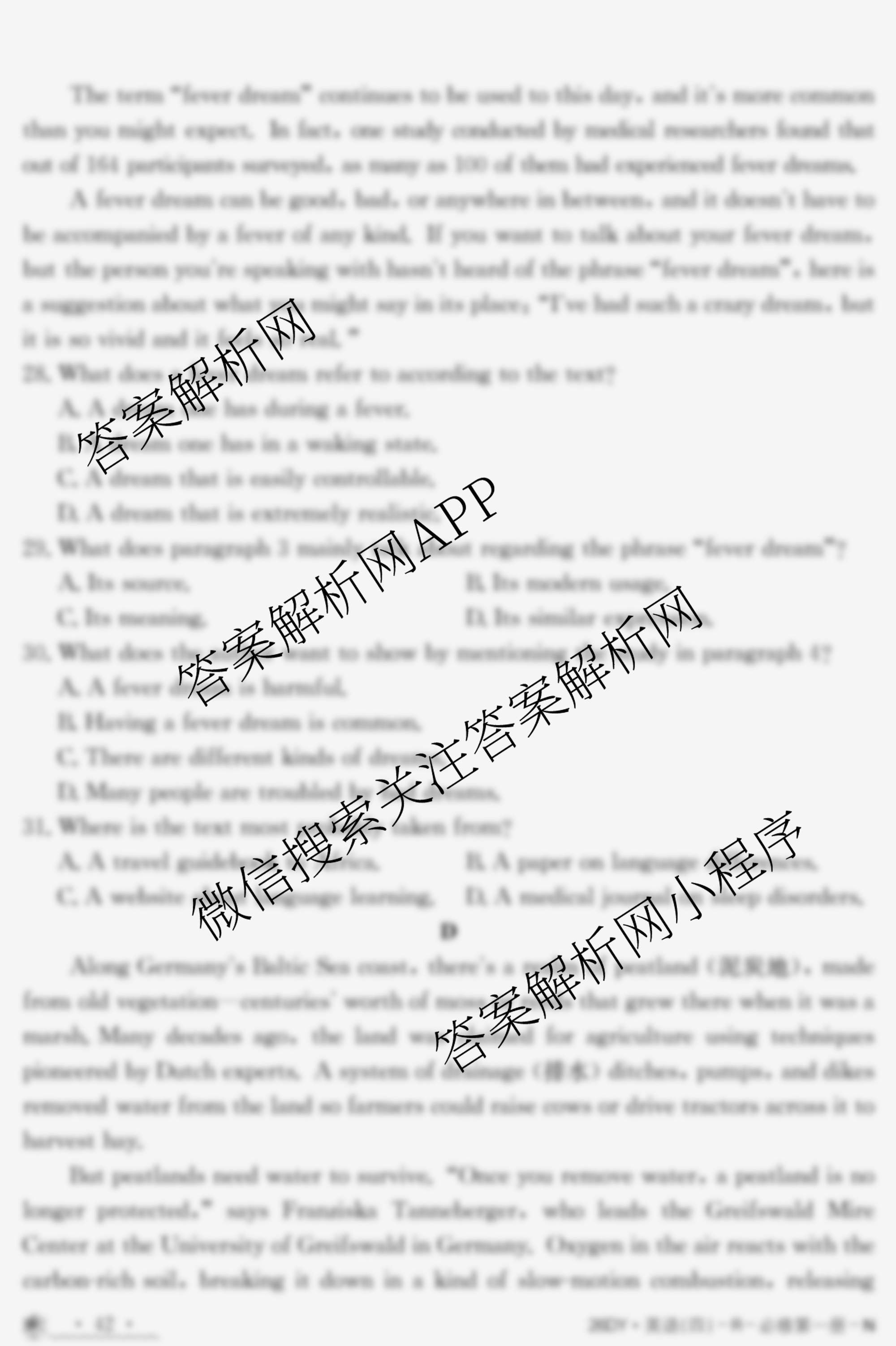 2026·单元测试示范卷·英语[26DY·英语·R-必修第一册-N](四)4试题,目前学英语报答案已经汇总了2026·单元测试示范卷·英语[26DY·英语·R-必修第一册-N](四)4试题的各科答案和试卷,获取更多金太阳100所名校答案解析,请在关注本站。