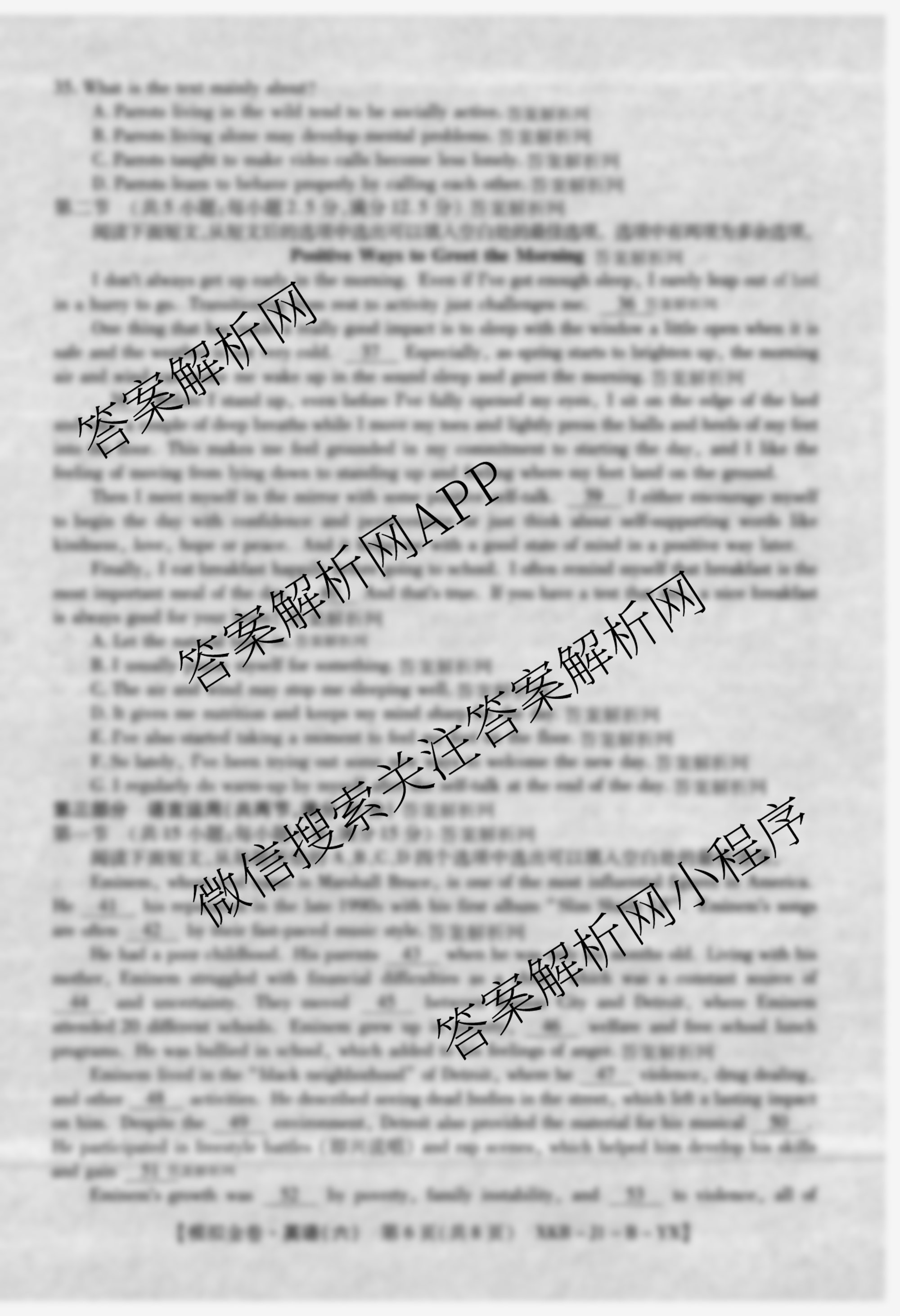 - 2026届(XKB-J-YX)·普通高等学校招生全国统一考试模拟金卷(六)6英语(XKB-J-YX)答案