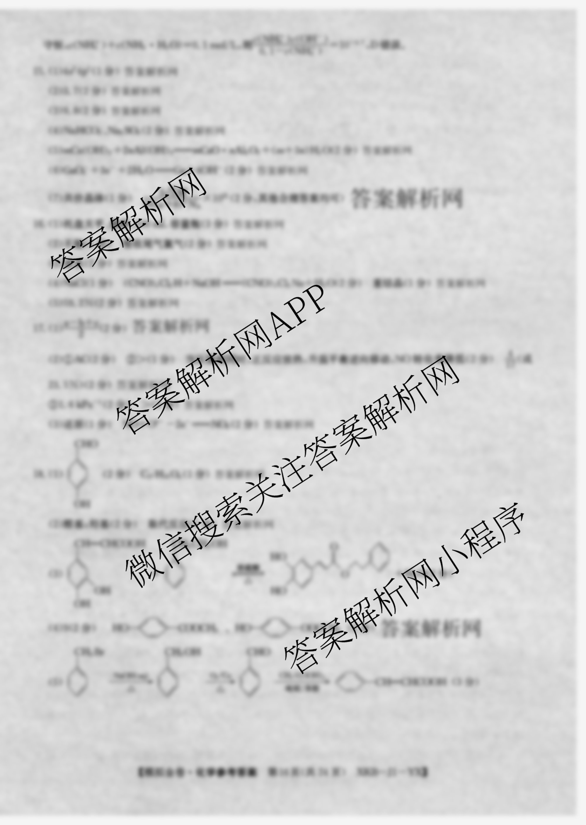 - (高三)(XKB-J1-YX)·2026届[普通高中学业水平选择性考试模拟金卷](四)4化学(XKB-J1-YX)答案