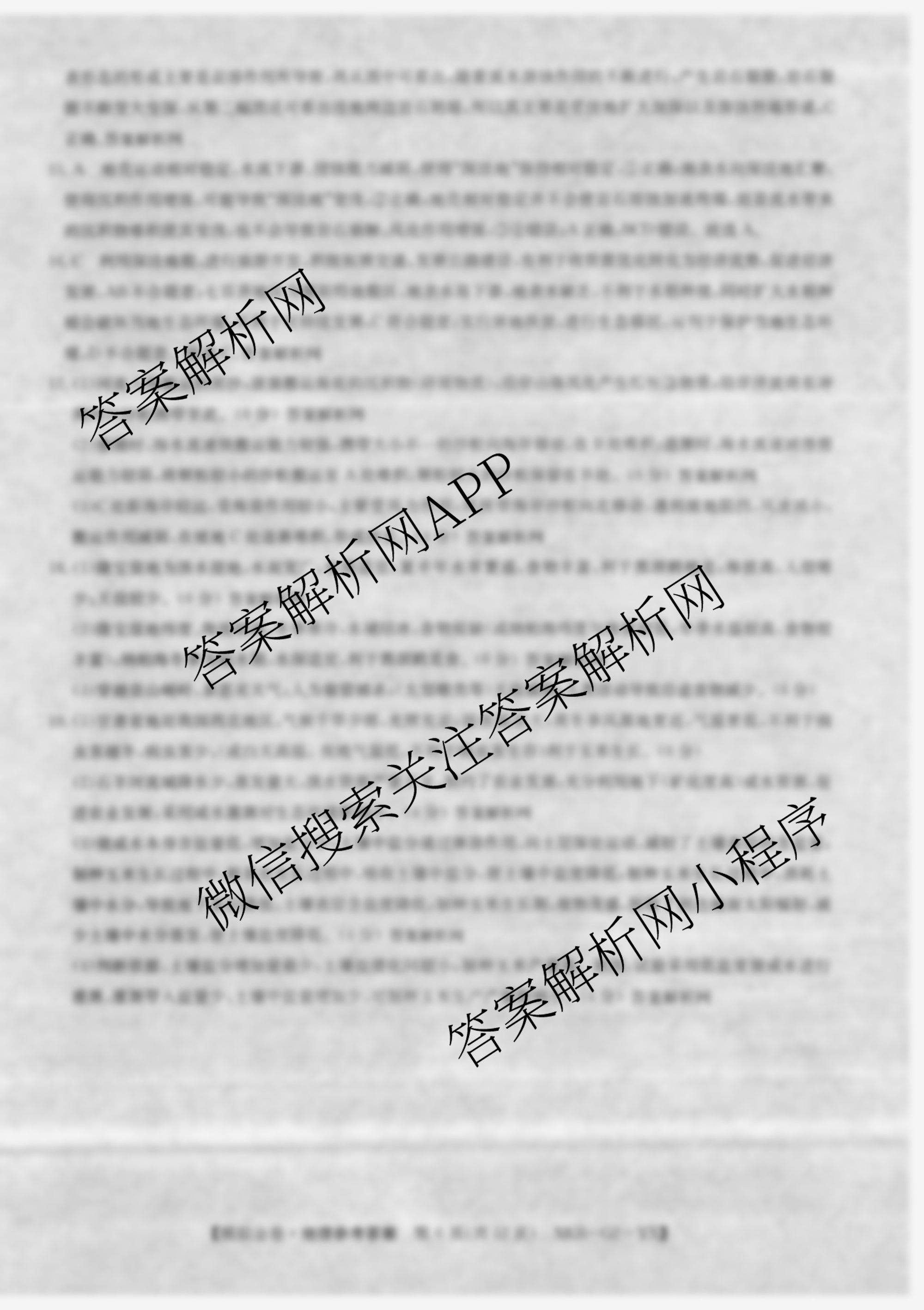 - (高三)(XKB-J1-YX)·2026届(普通高中学业水平选择性考试模拟金卷)(三)3地理(XKB-J1-YX)答案