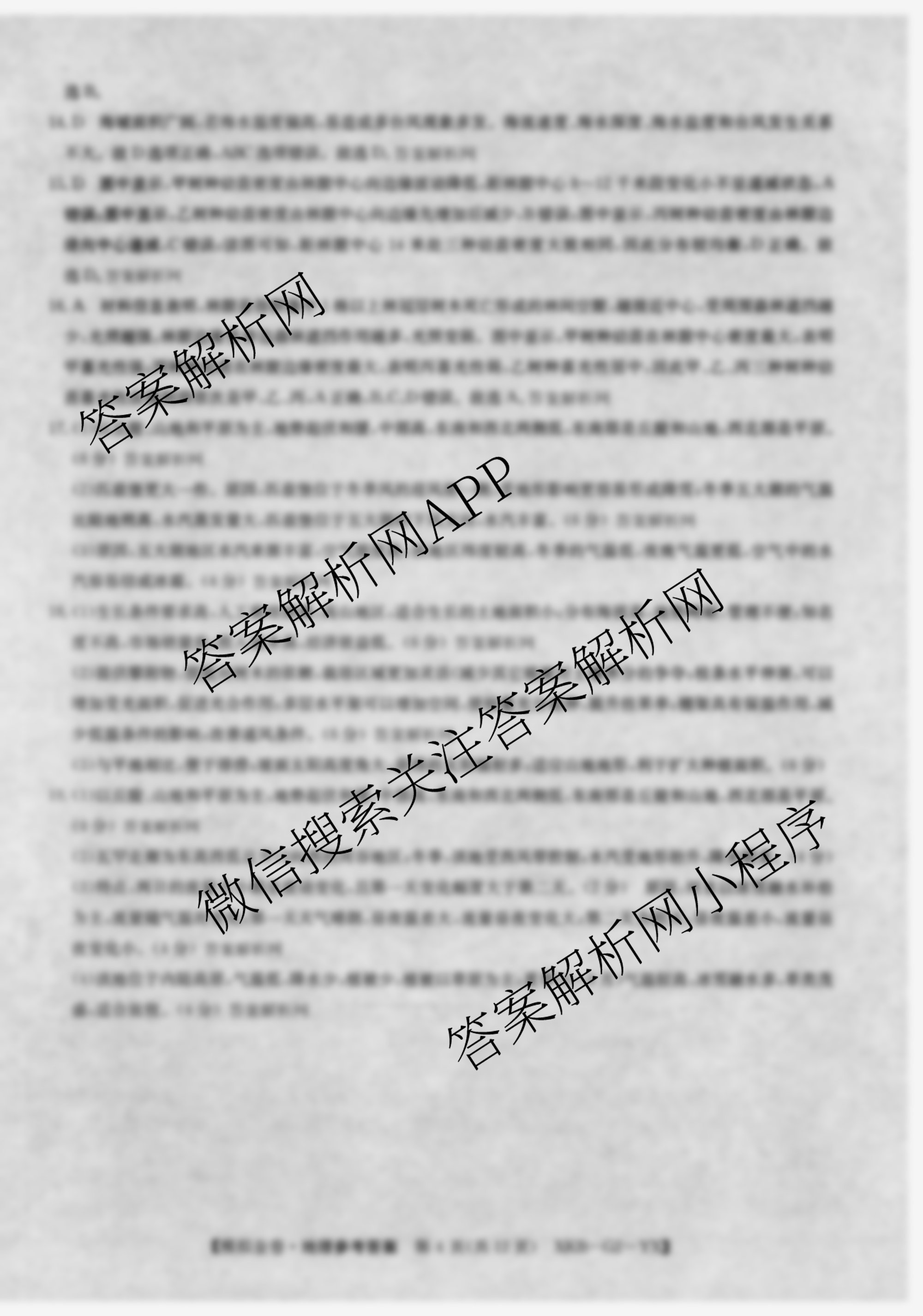 - (高三)(XKB-J1-YX)2026届[普通高中学业水平选择性考试模拟金卷](二)2地理(XKB-J1-YX)答案