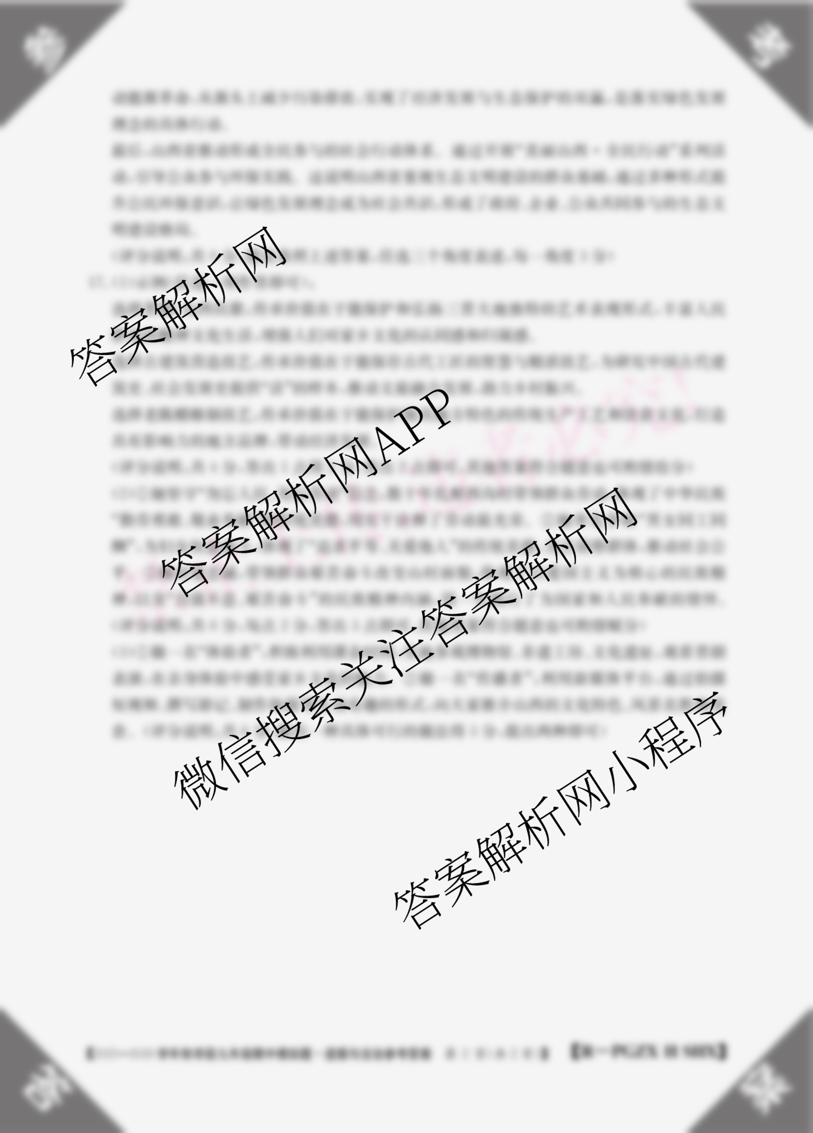 - 2025~2026山西省学年秋学段[九年级]期中模拟题[PGZX H SHX]道德与法治(R)答案