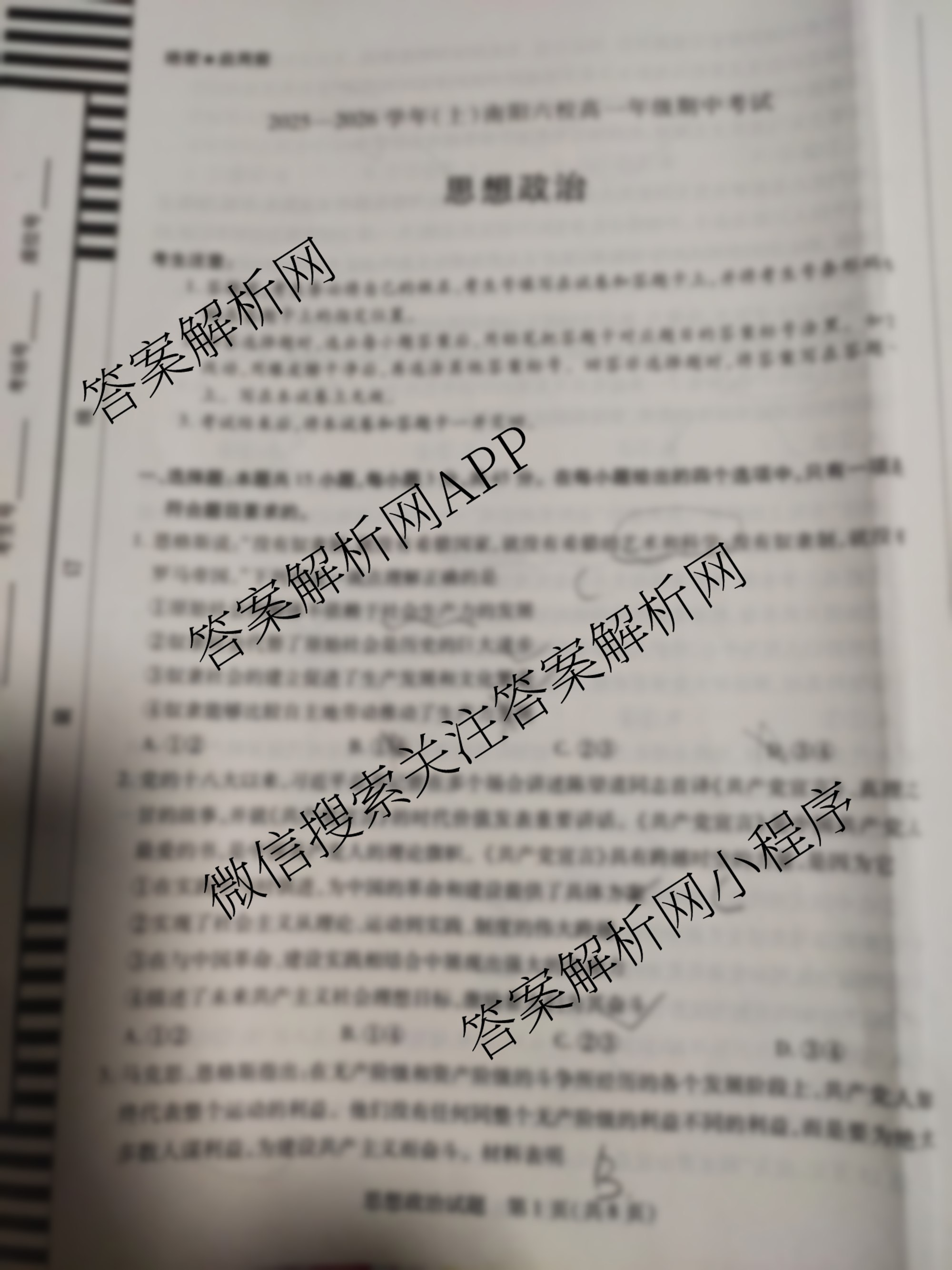 - 2025-2026[天一大联考]学年(上)南阳六校[高一]年级期中考试政治试题