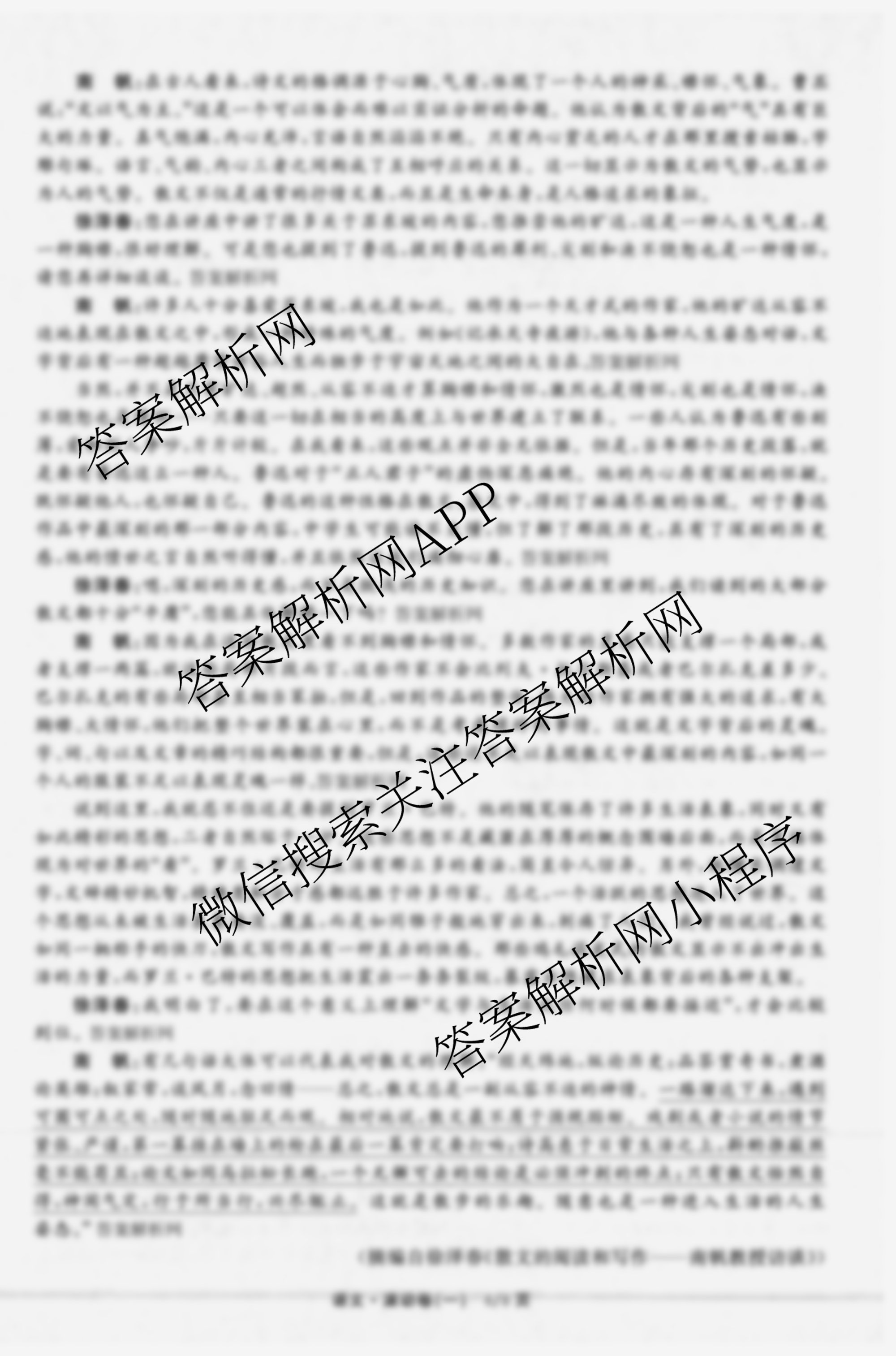 - (衡中同卷)·2025-2026学年度(高三)复习滚动卷(一)1语文答案