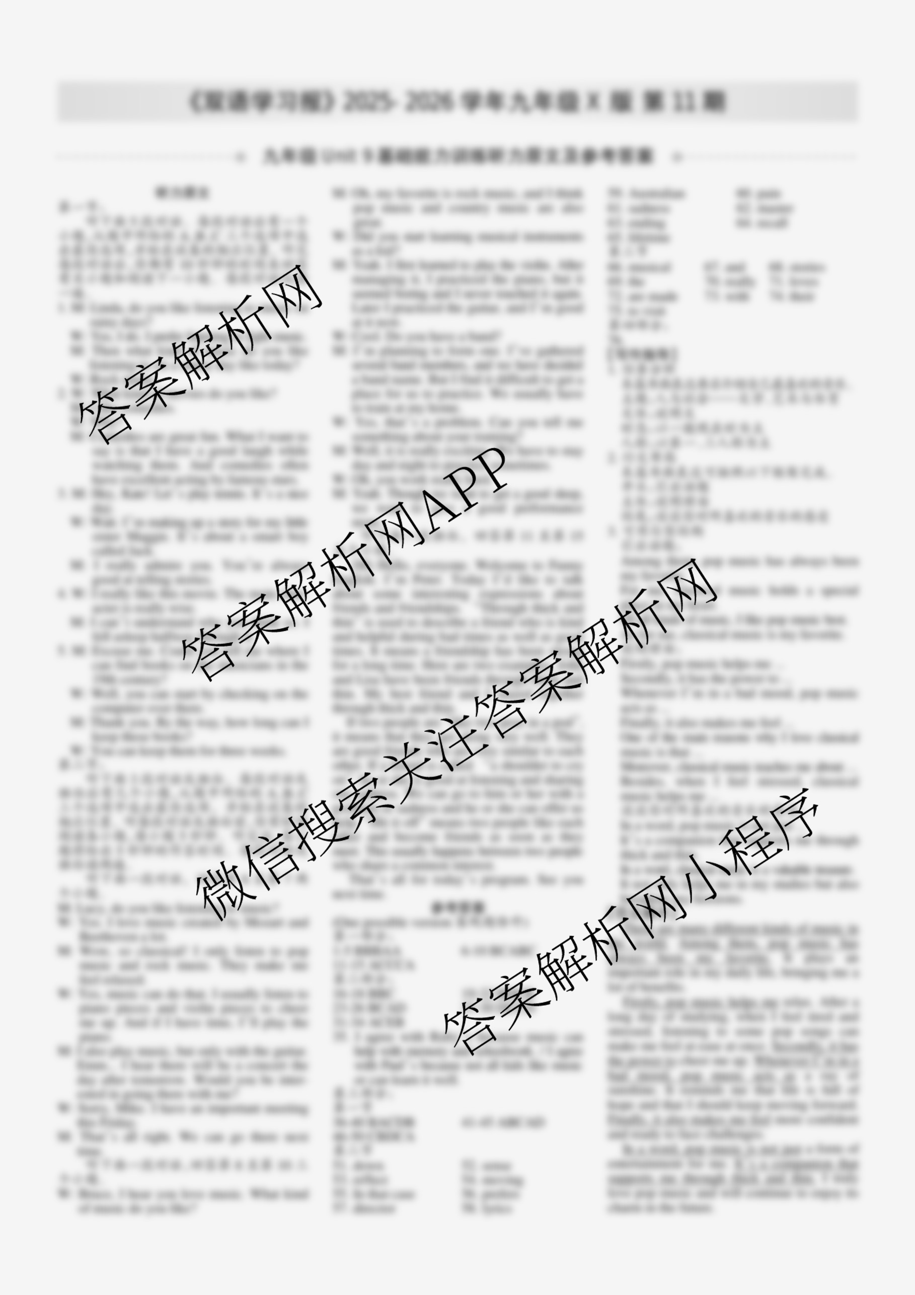 2025-2026 双语学习报 九年级 X版第11期答案