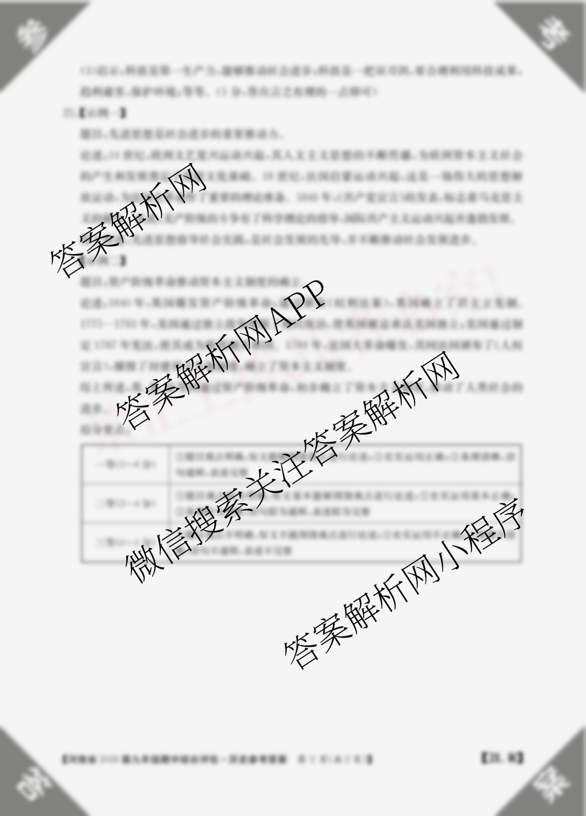- 河南省2026届九年级上学期期中综合评估[2L-HEN]历史(R)答案