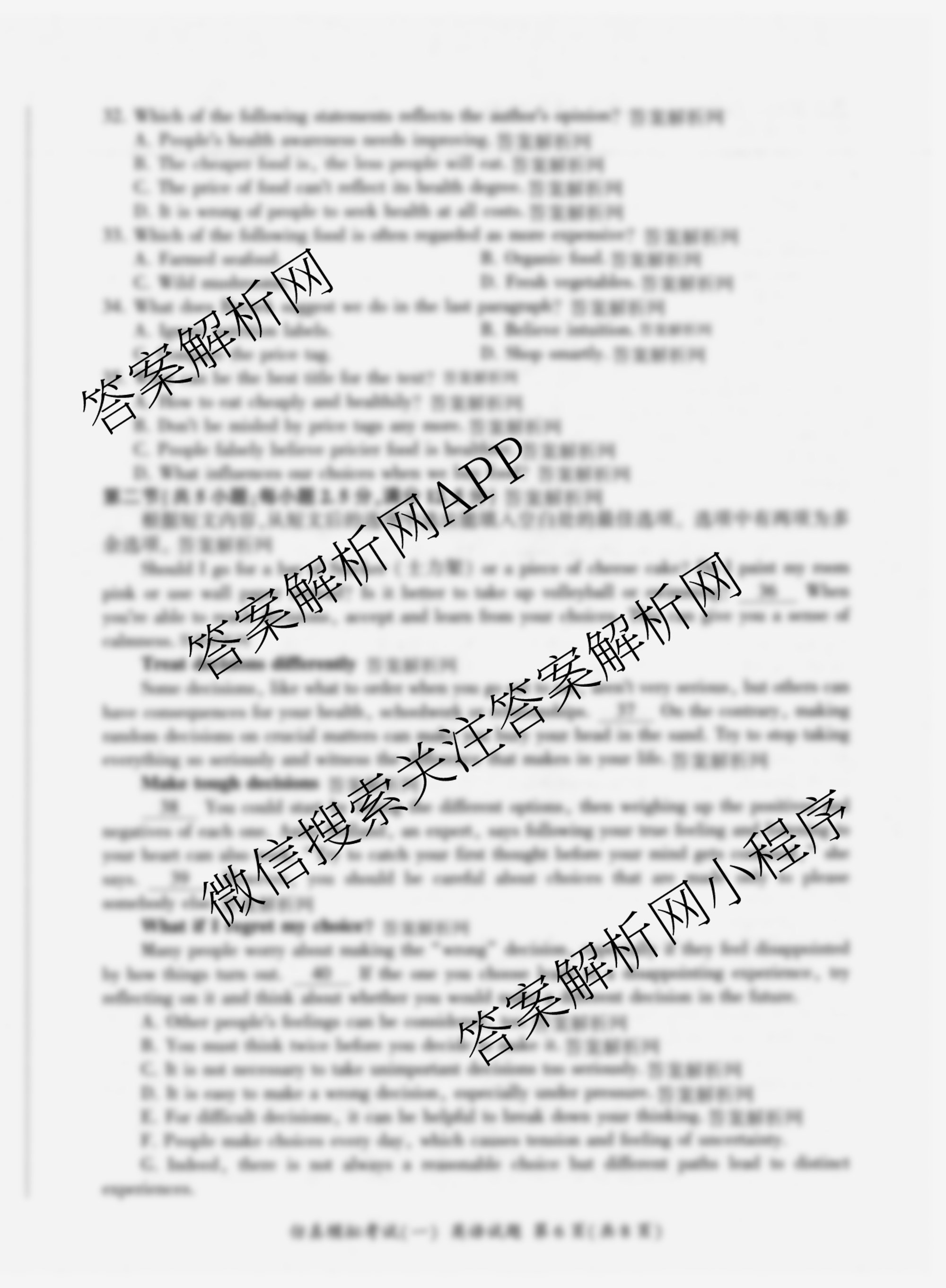 - 2026届(百师联盟)·[高三]仿真模拟考试(一)1英语(百A)答案