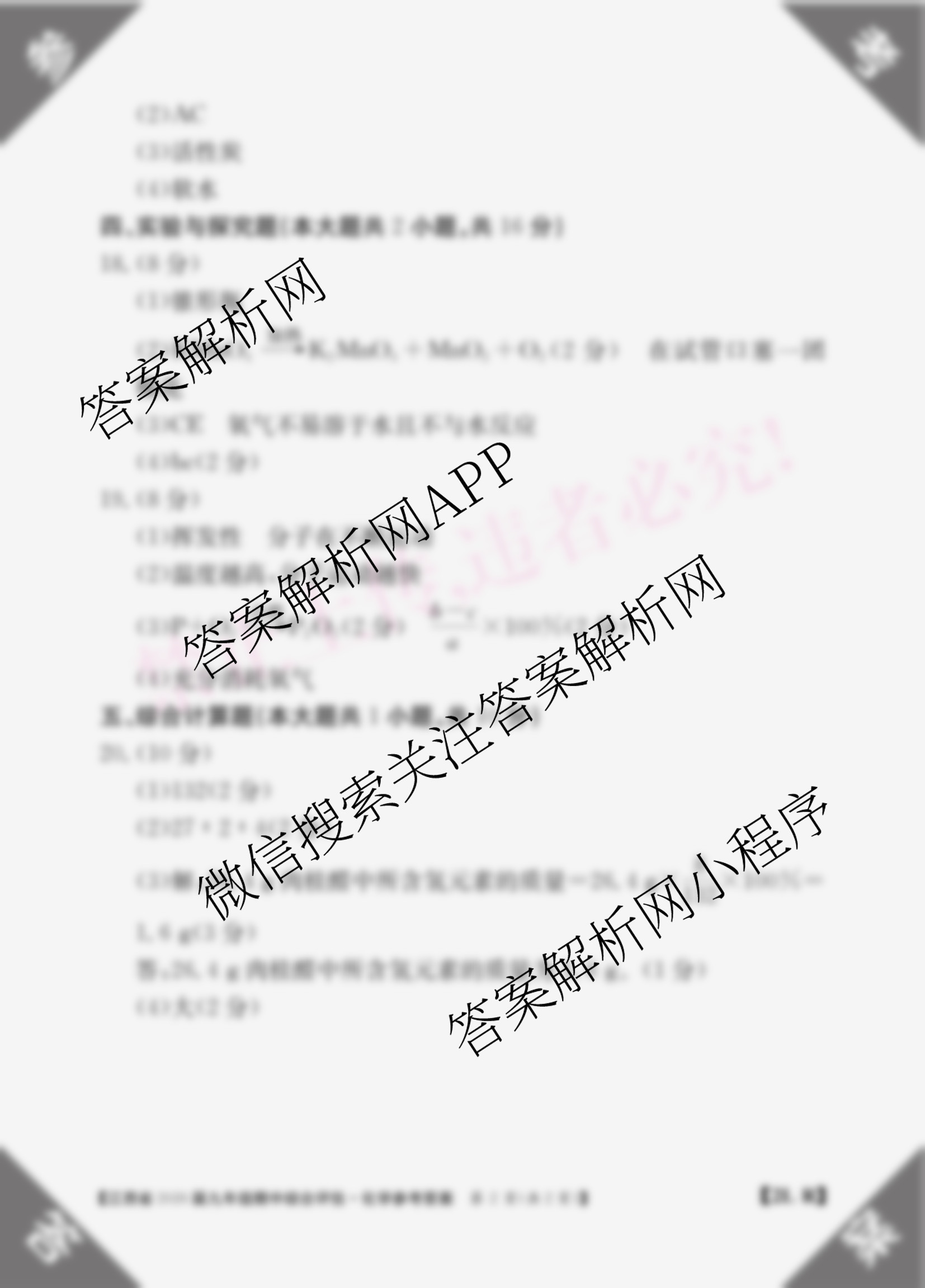 - 2026届江西省九年级期中综合评估[2L]化学(R)答案