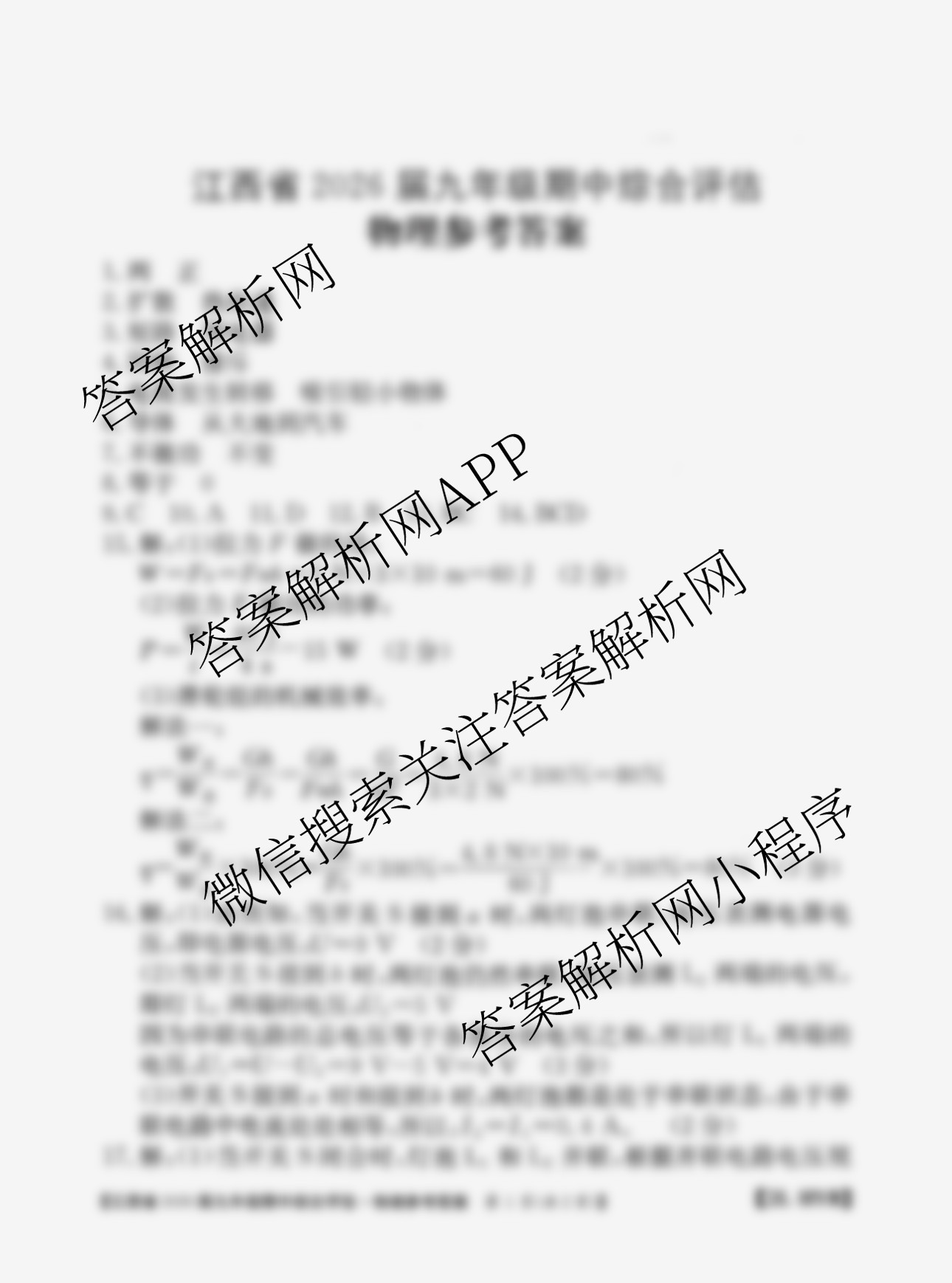 - 2026届江西省[九年级]期中综合评估[2L]物理(JKB)答案