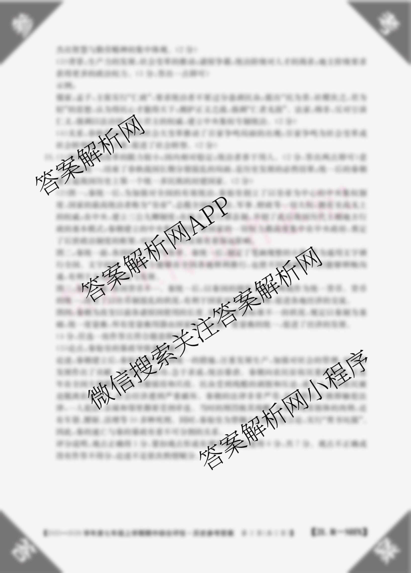 - 2025-2026山西省学年度(七年级)上学期期中综合评估[2L-SHX]历史(R)答案