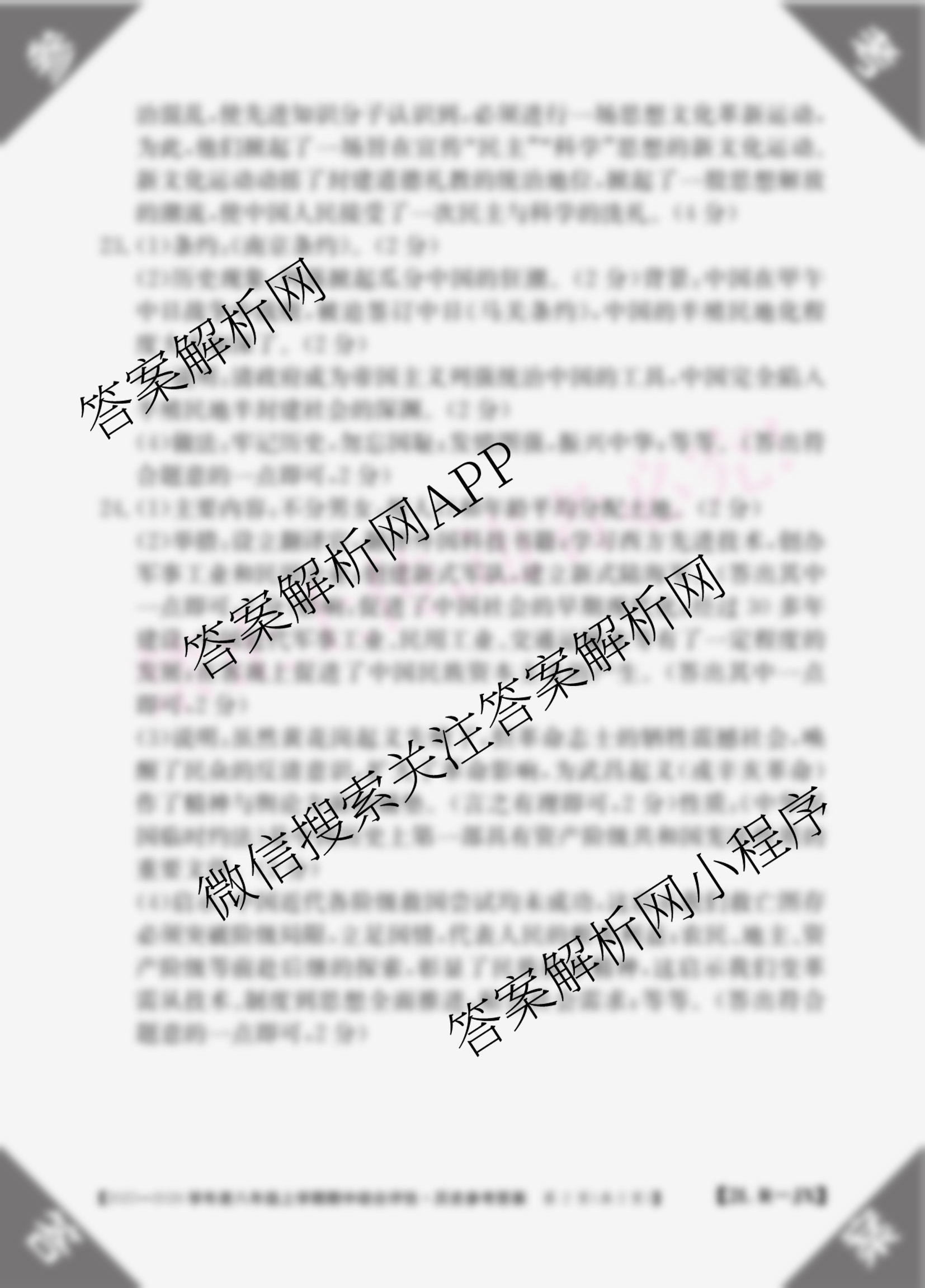 - (八年级)江西省2025-2026学年度上学期期中综合评估[2L-JX]历史(R)答案