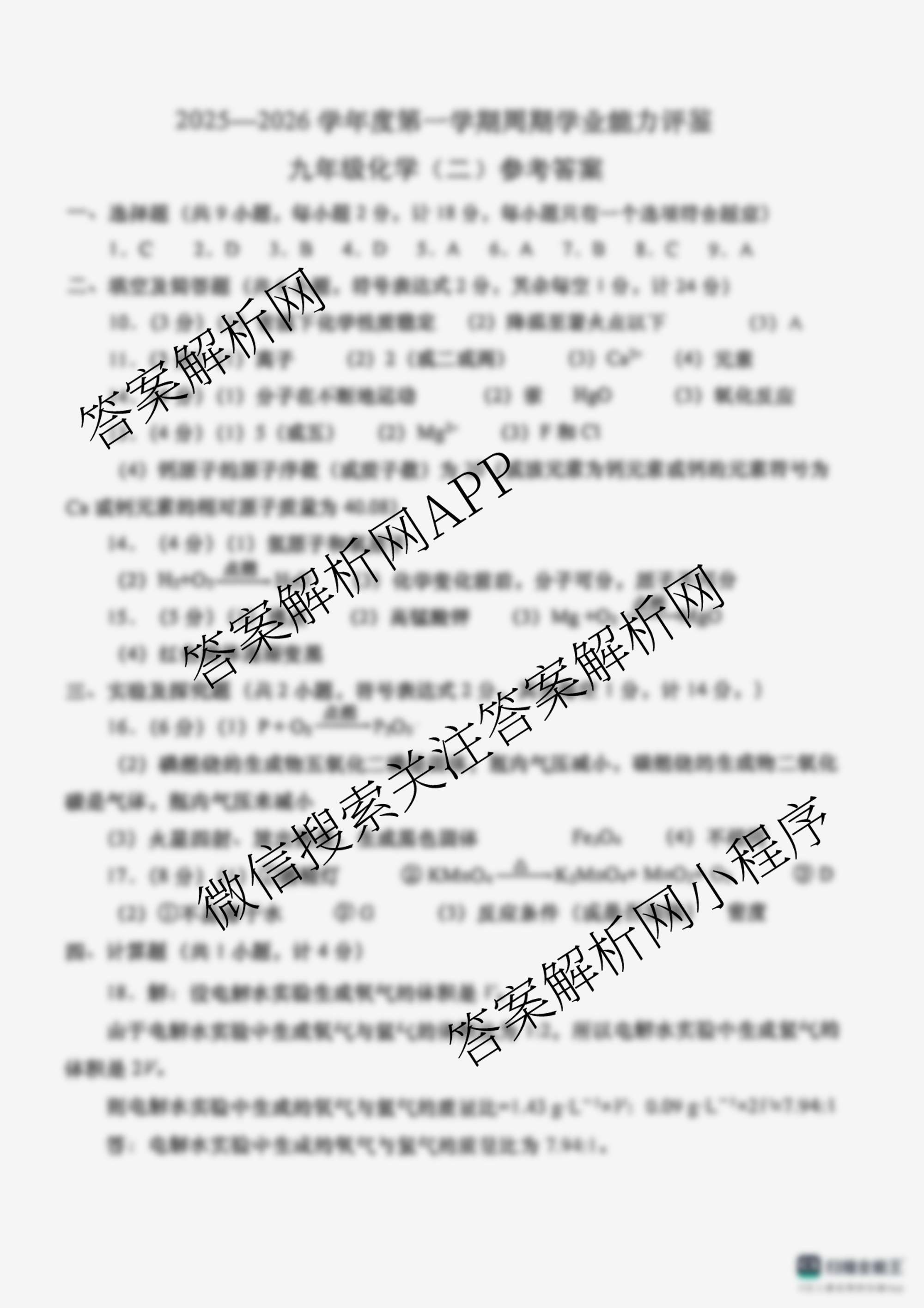 - 陕西省2025~2026学年度第一学期[周期学业能力评鉴](无字母)[九年级](二)化学答案
