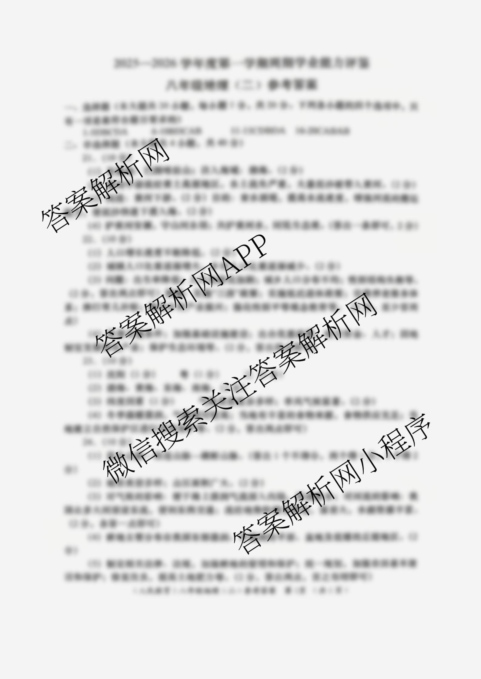 陕西省2025-2026学年度第一学期周期学业能力评鉴(无字母)八年级(二)地理(人民教育)答案,目前学英语报答案已经汇总了陕西省2025-2026学年度第一学期周期学业能力评鉴(无字母)八年级(二)地理(人民教育)答案的各科答案和试卷,获取更多周期学业能力评鉴答案解析,请在关注本站。