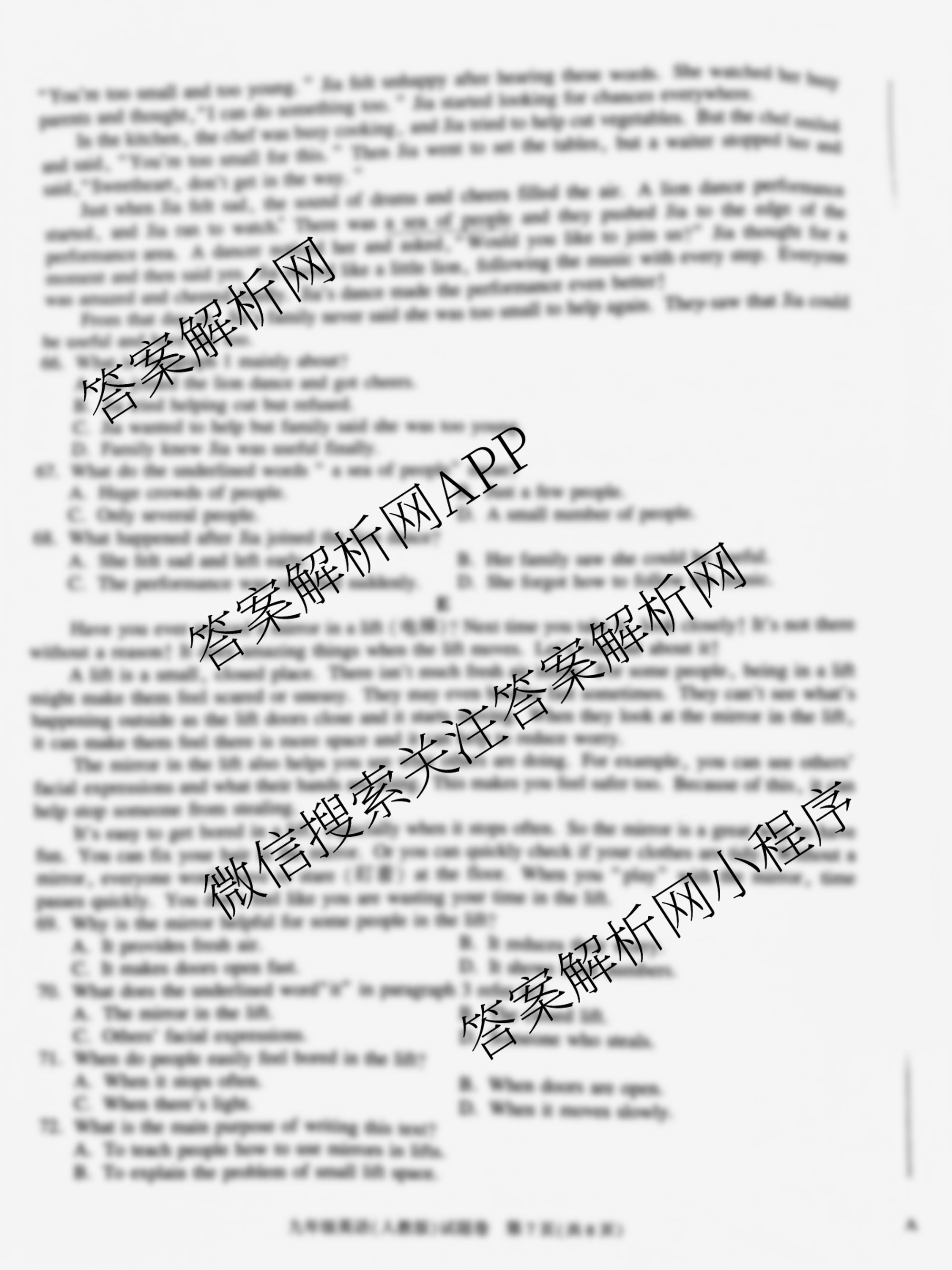 - 安徽省2025~2026学年[九年级]上学期期中教学质量调研A卷(无标题)(11.6-7)英语(人教版)答案